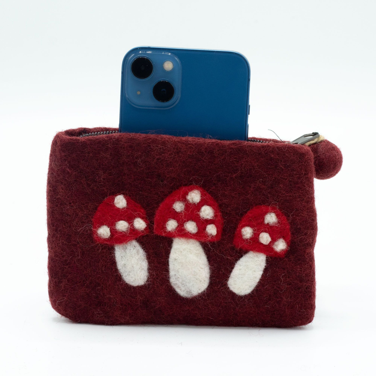 Natural Felt Zipper Pouch (asst) - Wild Mushrooms