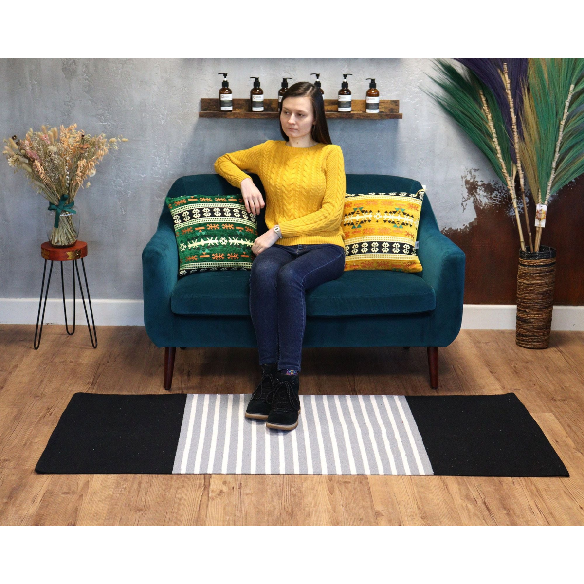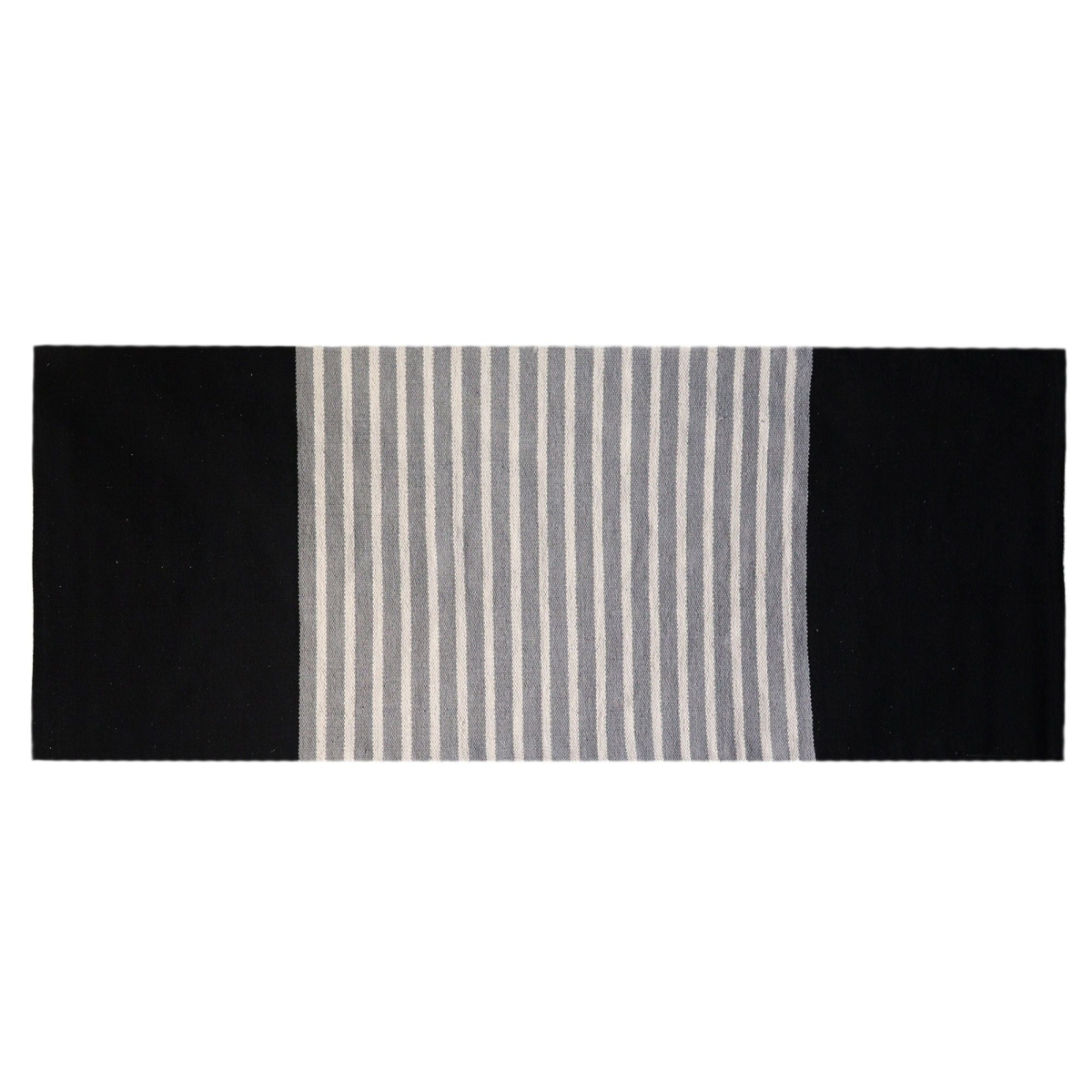 Indian Cotton Rug - 70x170cm - Black / Grey