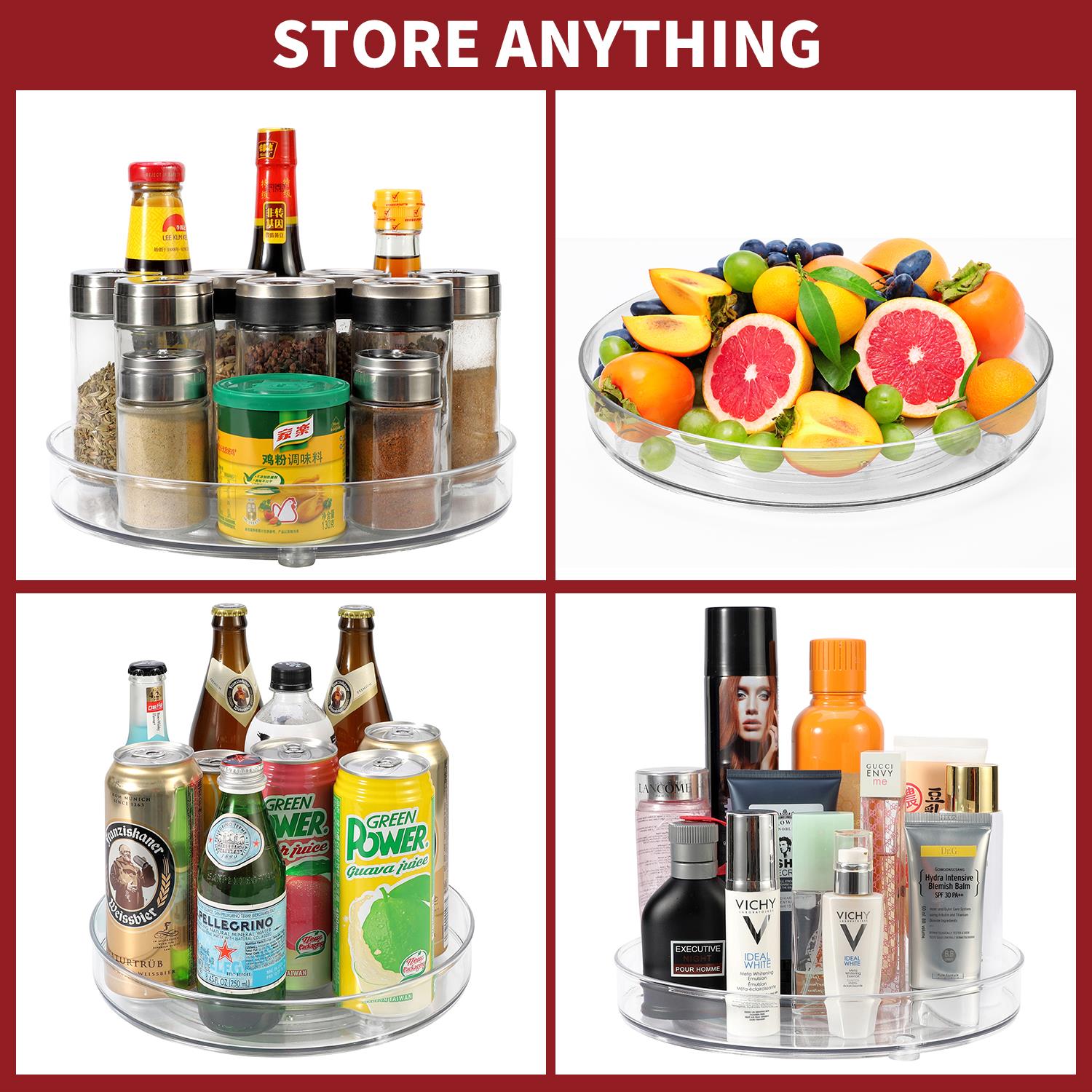 SPACE SAVER: Our transparent turntable organizer is an ideal choice as your organizer solution as it creates more space and makes your house orderly and tidy. Perfect for organizing anywhere in your kitchen, bathroom, living room, dressing table, dining table, cabinets, countertops, pantries, cupboard, fridge.