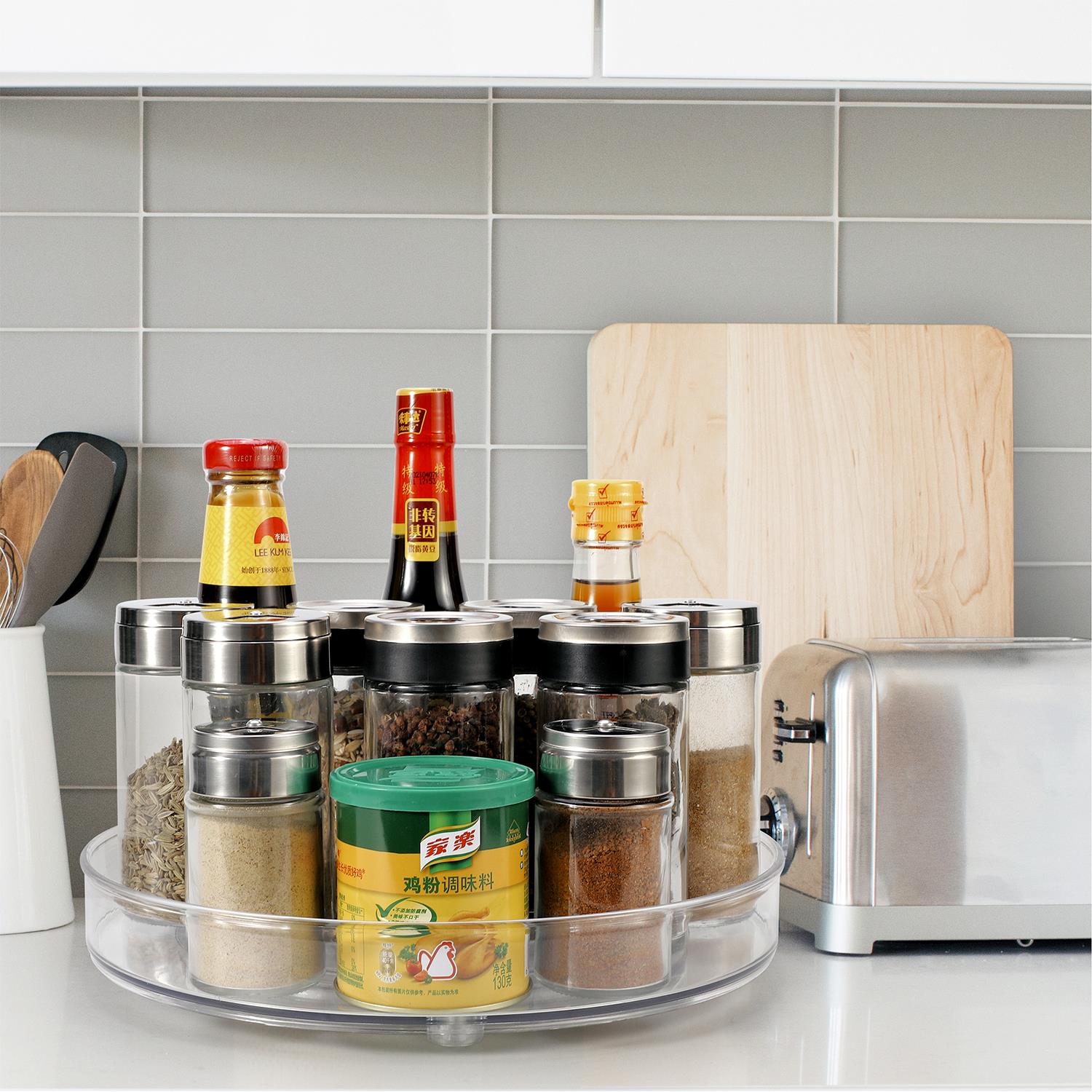 360° ROTATION: With this convenient 360° smooth-gliding turntable organizer, you can simply organize your condiments. In just a few rotations, you can keep everything organized, visible, and accessible.