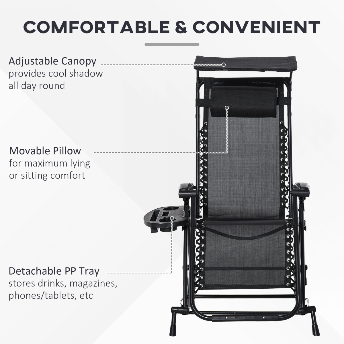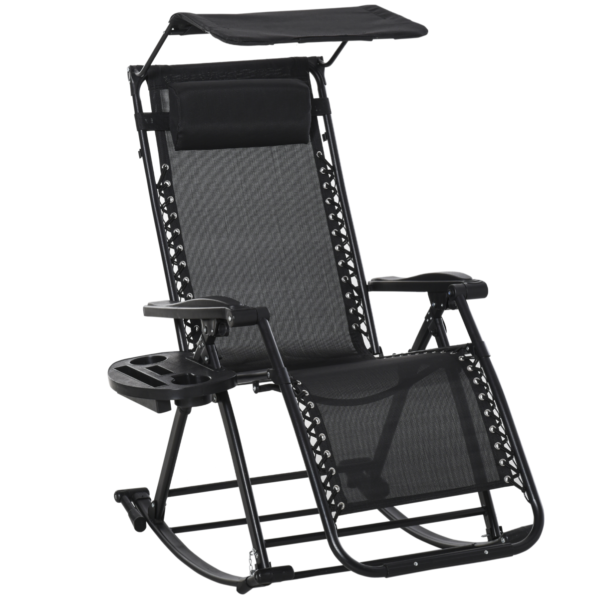 This rocking sun lounge chair from Outsunny is the perfect gateway to total relaxation in the sun. With a powder coated steel frame for durability that lasts for years it can be set in several ways from a low back to a high back to stationary to rocking back and forth. It features a durable texteline sling fabric cover and a removable padded headrest to create even more comfort during your downtime. Foldable and lightweight you can move it around easily ideal for chasing those sun rays around.