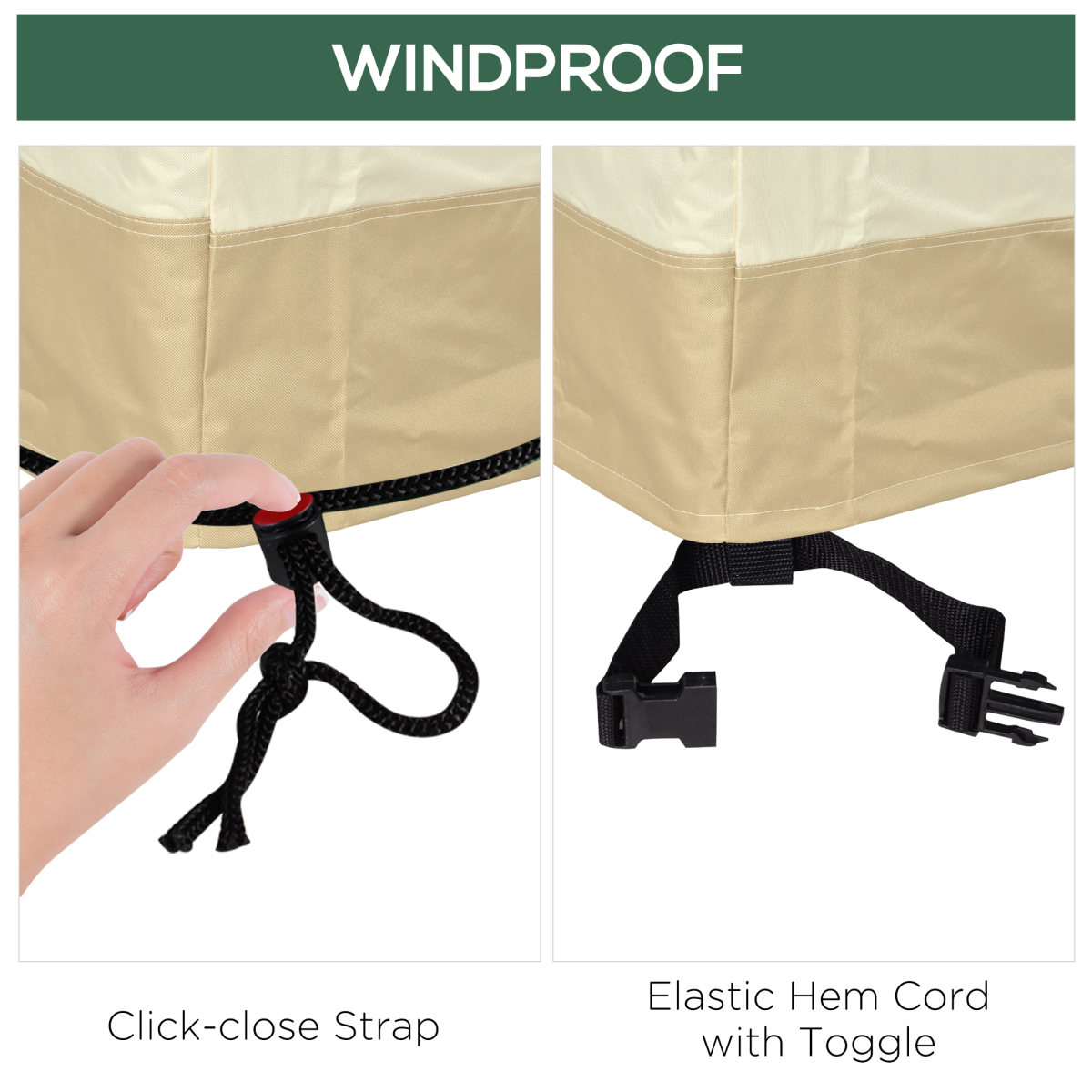 This classic Patio Furniture Cover from Outsunny is designed to keep your outdoor furniture looking great. Made from high grade oxford cloth, our patio furniture covers can resist cracking, fading, tearing and mould. The Fabric is coated with PVC for increased water resistance and further protection form the elements. Designed for style, the cover is in classic beige colour. It can perfectly protect a 3-person Chair from dust and bad weather like rain and snow. Because of its waterproof function, it is easy to be cleaned with a wet cloth. Add it to your chairs for better furniture protection.