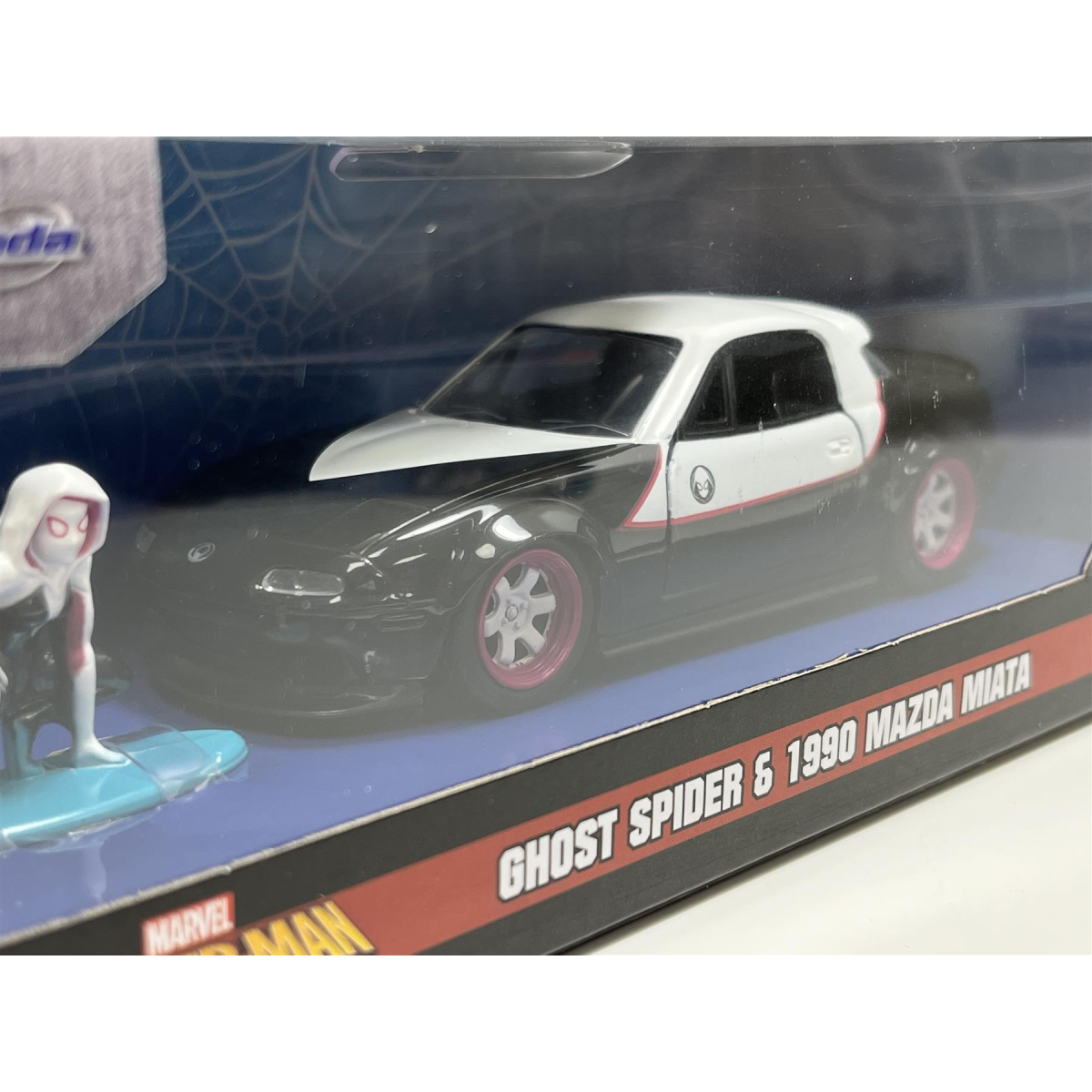 Spiderman Ghost Spider Figure and 1990 Mazda Miata 1:32 Scale Jada 33662 253223014