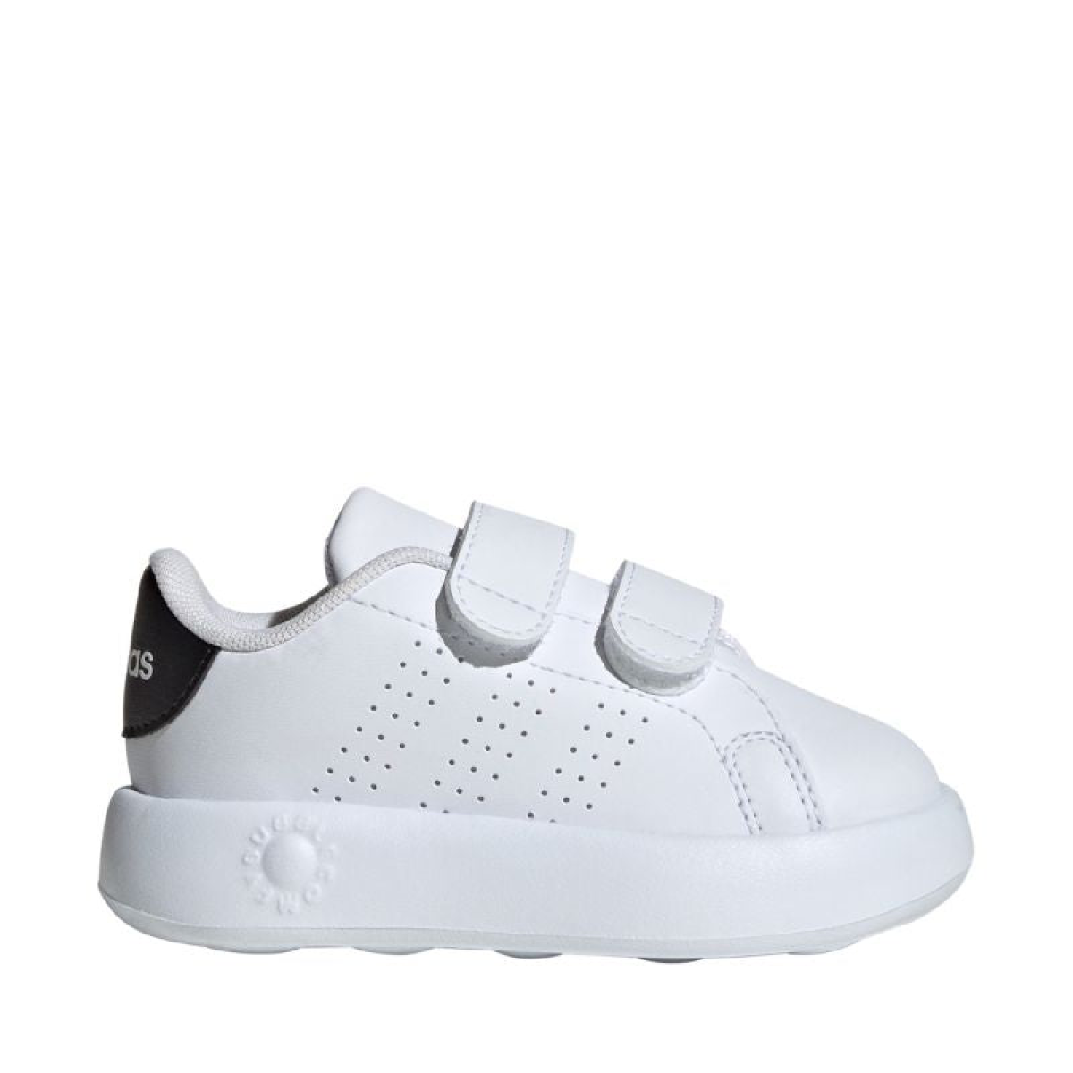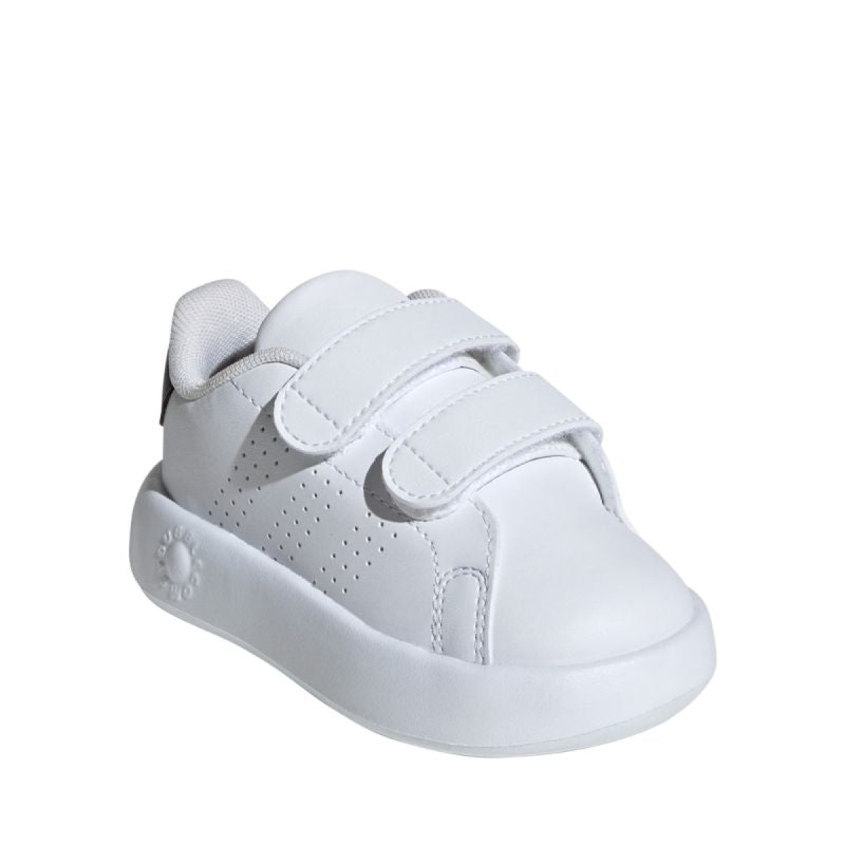 adidas Advantage Kids' Shoes White ID5284. These lightweight adidas kids' shoes provide comfort. The upper is made of soft synthetic materials. Side perforations in the upper. Specifications:· Standard fit· Hook-and-loop closure· Upper made of recycled synthetic materials· Soft, cushioned comfort· Textile insole· One-piece EVA midsole and outsole· This model contains at least 20% recycled materials