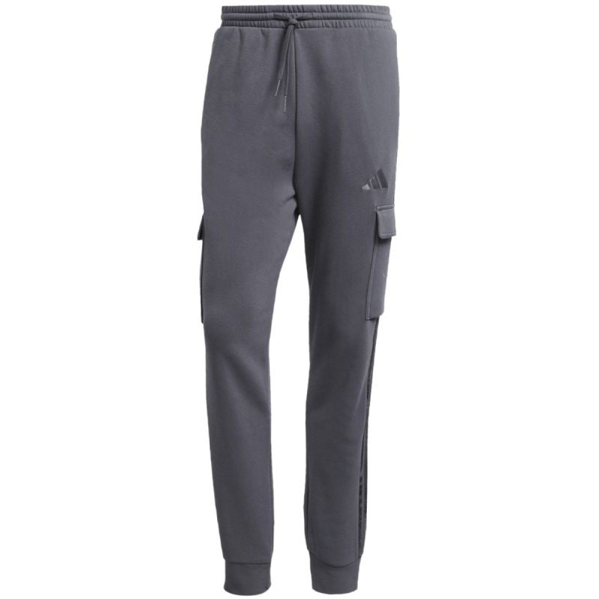 adidas AOP Colourblock Men's Pants Gray JM1716. These adidas men's pants with tapered legs offer unrestricted movement, allowing for full mobility and comfort in any position. Soft-touch material. Elastic, subtle cuffs. Wide waistband with an external drawstring for adjustment. Multiple pockets. Sporty design with stripes on the legs and a discreet adidas logo. Material: 70% cotton, 30% recycled polyester