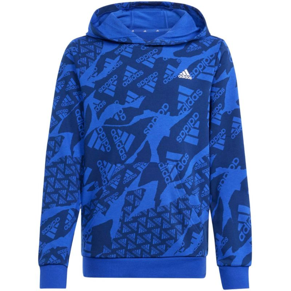 Adidas Essentials Allover Print HD children's sweatshirt, blue IS2555