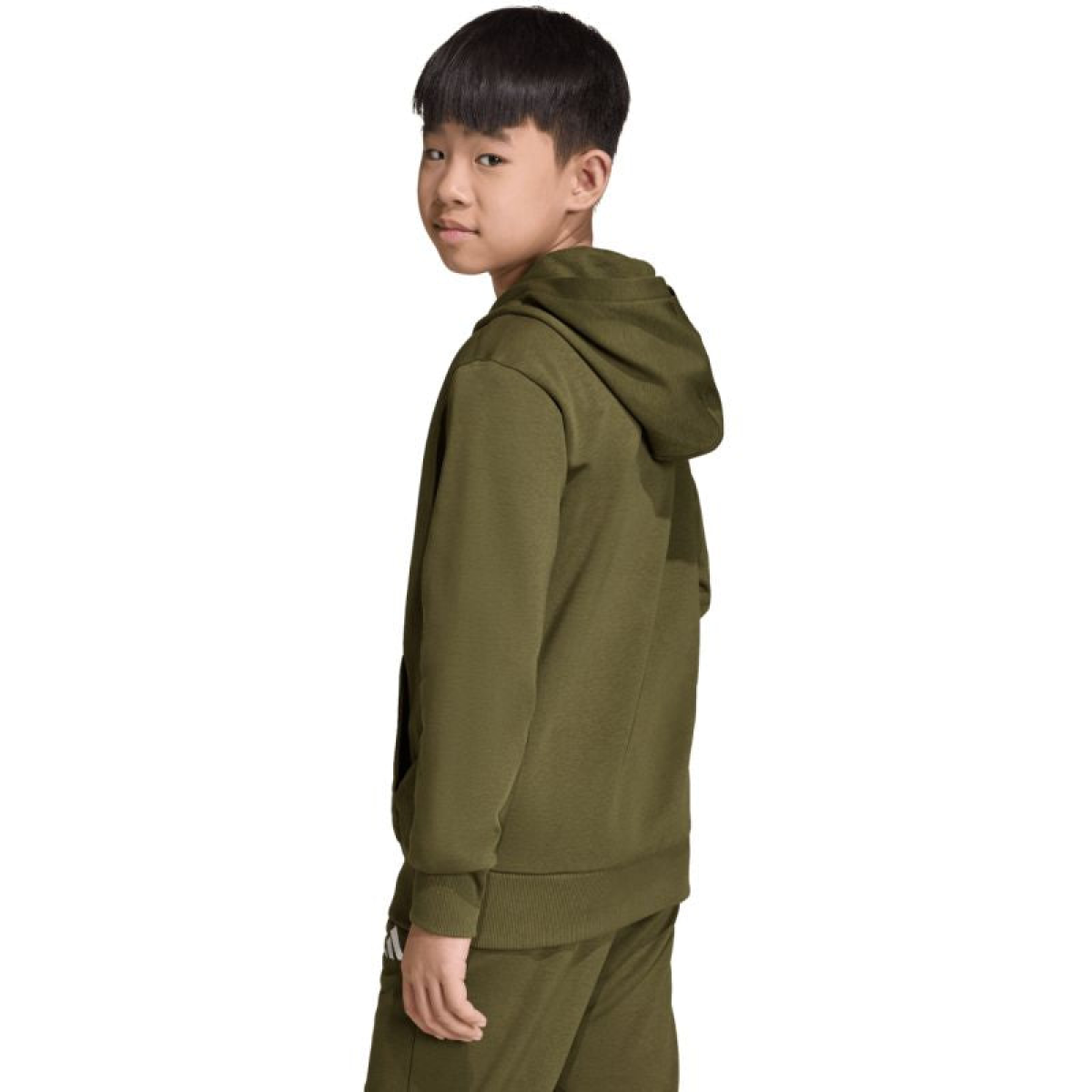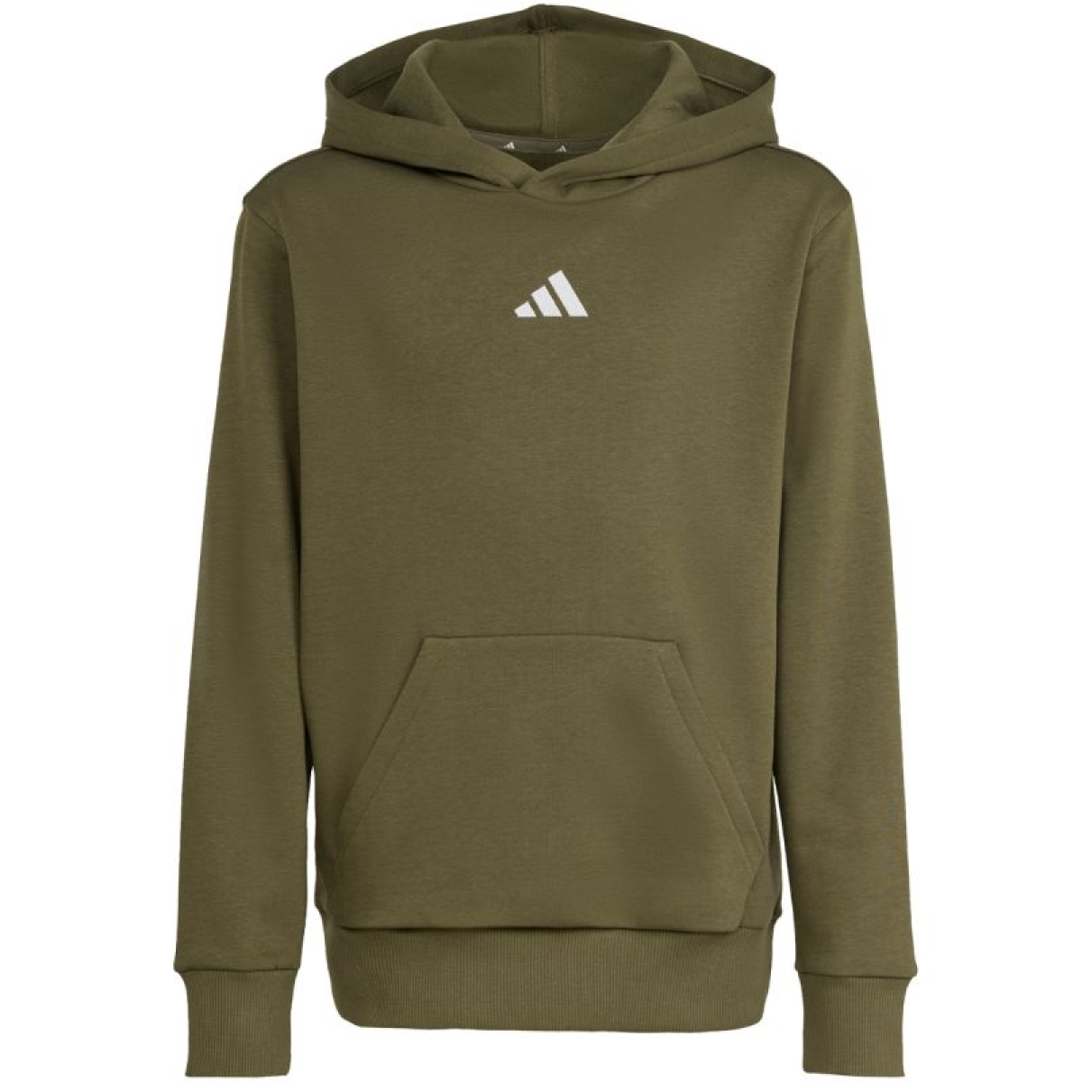 adidas Essentials Hoodie 225 Olive KS0367 for Kids. This adidas sweatshirt is designed with your child's comfort in mind. Standard fit. Cotton jersey is soft to the touch. Synthetic fibers enhance durability. Lightweight insulation. Ribbed cuffs and hem. Non-adjustable hood. Material: 71% cotton, 29% recycled polyester