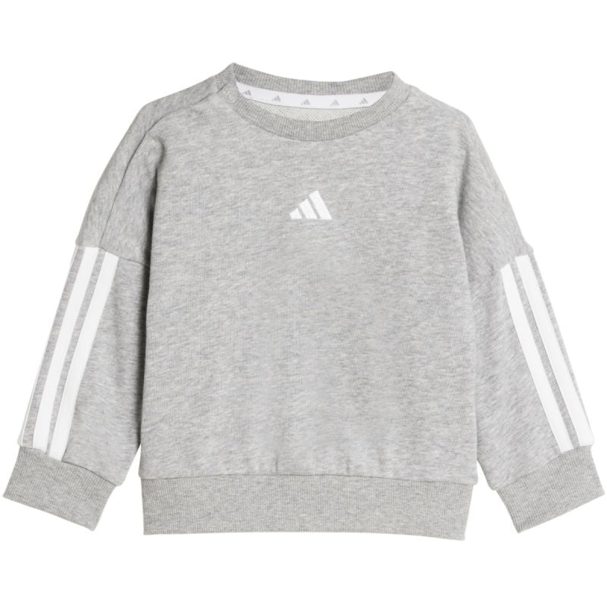 adidas Essentials Joggers Gray Tracksuit for Kids JV9852 This adidas tracksuit for kids is perfect for everyday wear. The sweatshirt and pants are made of cotton and polyester. It has a standard fit. Sweatshirts up to size 86 cm feature a snap closure on the shoulder. The pants have an elastic waistband and elastic cuffs on the legs. Material: 70% cotton, 30% polyester