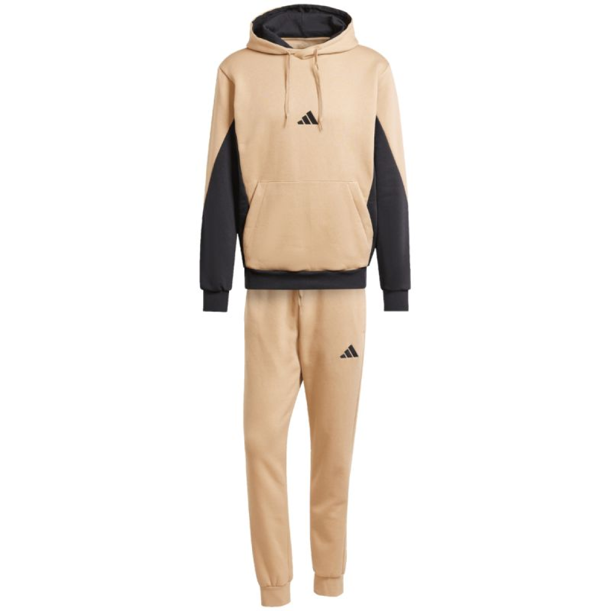 Men's adidas Sportswear Fleece Colorblock Hooded Tracksuit Beige KB5265