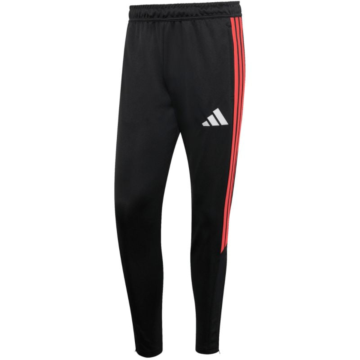 Men's adidas Tiro 26 League Training Pants, Black and Red JY7111. These men's adidas pants from the Tiro football collection are perfect for training. Quick-drying fabric. Climacool technology wicks and disperses sweat, keeping you cool and dry. Slim fit. Mid-rise, elastic waistband with a drawstring. Side pockets with zippers. Zippered leg openings. Material: 100% recycled polyester