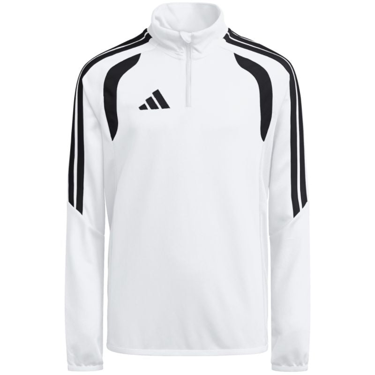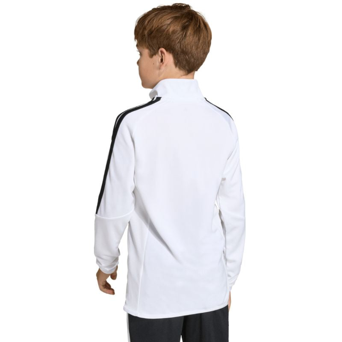 adidas Tiro 26 League Training Top for Kids, White KC3696. This adidas football top is perfect for training. Finished with a chin guard and a half-zip closure. Slim fit. Climacool technology is a functional solution that keeps you cool, dry, and focused on the game. The hem and cuffs are finished with elastic trim. Contrast mesh inserts. Stripes on the sleeves. Subtle logo on the chest. Material: 100% recycled polyester