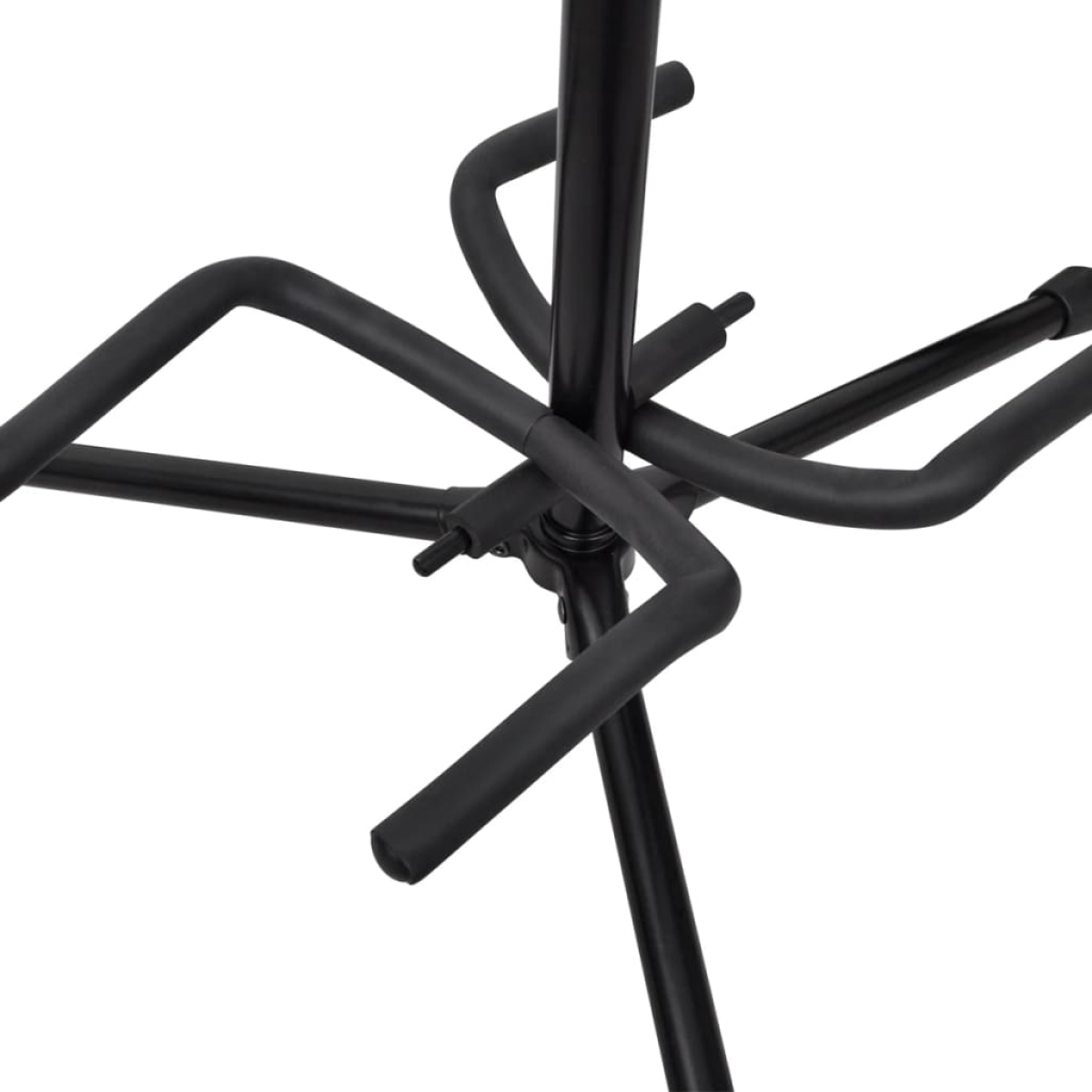 Made of quality steel, this adjustable double guitar stand is ideal for placing all kinds of guitars. Its unique design allows you to place two guitars at one stand. Built with heavy duty construction, this guitar stand is designed for years of use. A removable yoke allows you to make desired height adjustments, making it perfect for any guitar. Thanks to the foamed neck supports and bottom holders, your guitars will be free from any damages. Anti-slip rubber end caps not only protect your floor from scratches, but also provide an added base support. The foldable design brings easy portability and better storage.