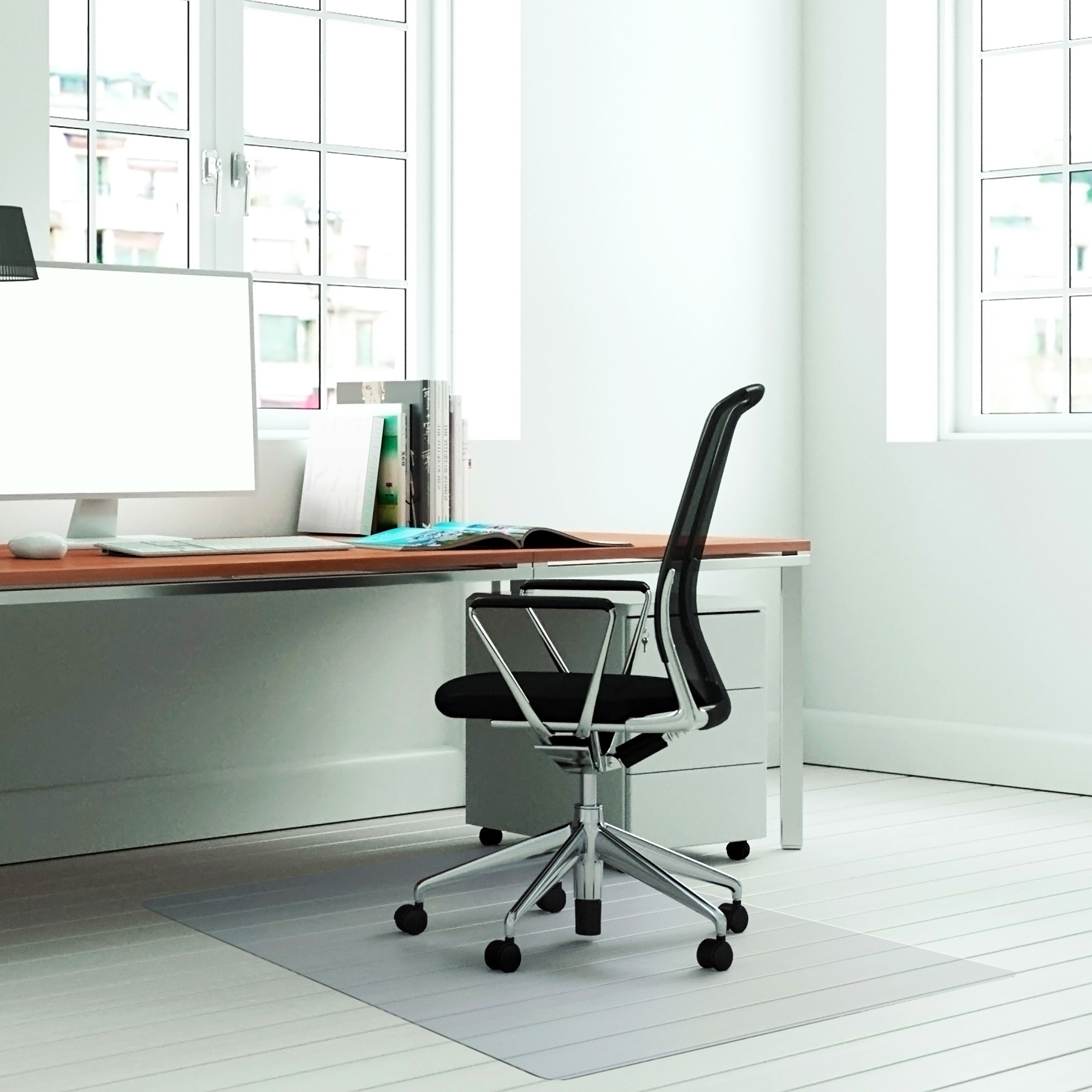 Cleartex Advantagemat Plus chair mats combine excellent ergonomic performance & floor protection with exceptional value. High impact resistant APET material provides a rigid easy glide surface for caster based chairs. Highly durability and clarity to protect your low and standard pile carpets from office chair casters, general wear, scuffs and spills. Easily recycled at end of life for re-use as water bottles and food containers. Emission free. Ideal for people with allergies. Vinyl, Bisphenol A (BPA) and phthalate free. Eco-friendly manufacturing with 50% of our manufacturing site’s energy coming from on-site and external renewable sources. 100% recyclable. 5 Year Limited Warranty.