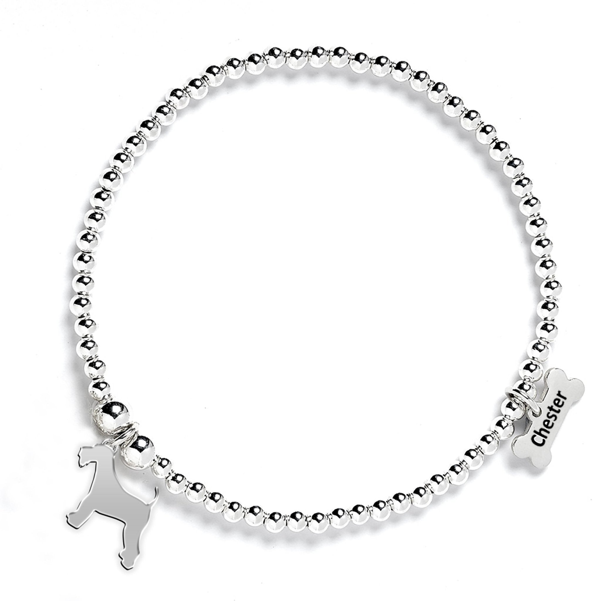 Airedale Terrier Silhouette Silver Ball Bracelet - Personalised