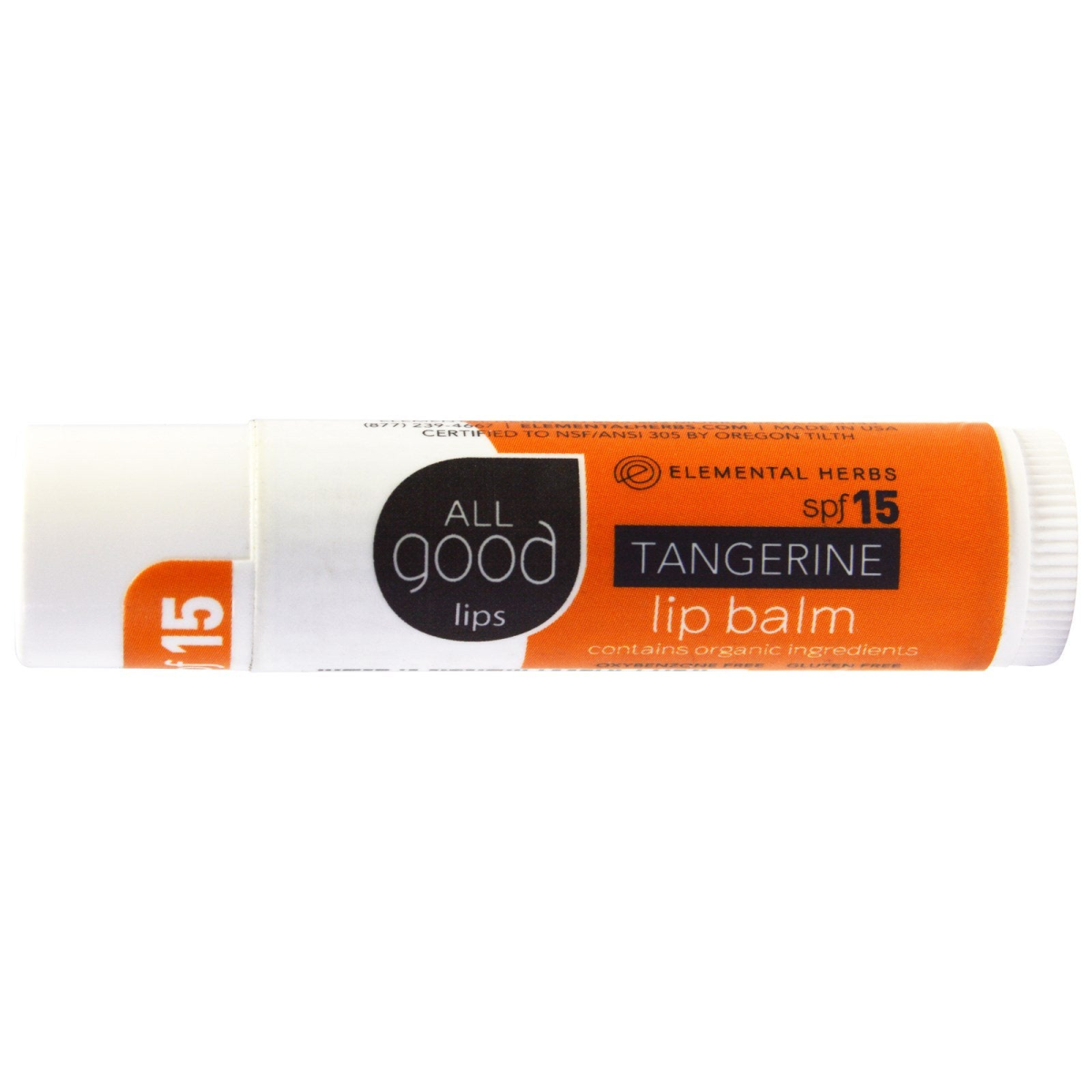All Good Products, All Good Lips, Lip Balm, SPF 15, Tangerine, 4.25 g