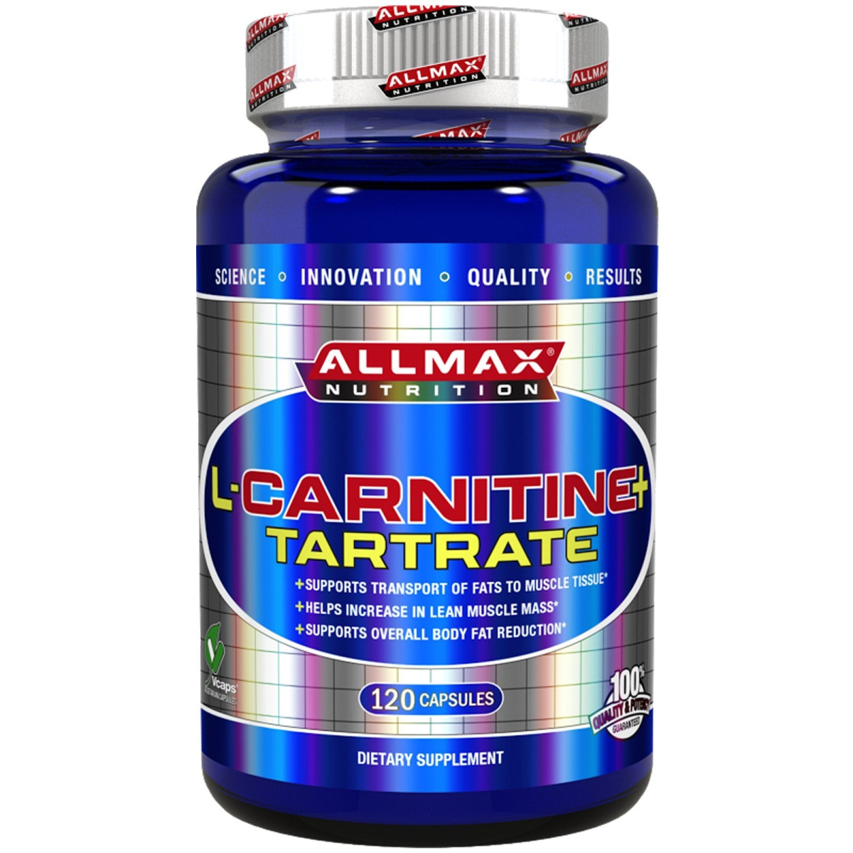 Science - Innovation - Quality - Results Supports Transport of Fats to Muscle Tissue Helps Increase in Lean Muscle Mass Supports Overall Body Fat Reduction Vegan Caps - 100% Vegetarian Dietary Supplement 100% Quality & Potency Guaranteed CGMP Certified Gluten Free Allmax introduces L-Carnitine L-Tartrate (LCLT), one of the world's most bio-available forms of L-Carnitine supplementation. Stimulant-Free Fat Metabolizer: L-Carnitine is essential for transporting long-chain fats into the cell (mitochondria). L-Carnitine taps into your fat supply and may provide support to burn it as fuel, resulting in increased energy. Without L-Carnitine, these fats cannot be burned for energy and are instead shunted to store body fat. Boost Energy, Endurance & Performance: L-Carnitine enhances performance by increasing the body's reliance on fat for energy; this reduces depletion of muscle glycogen. By reducing muscle tissue lactic acid build-up, performance athletes using L-Carnitine can extend duration of muscular exertion before fatigue.