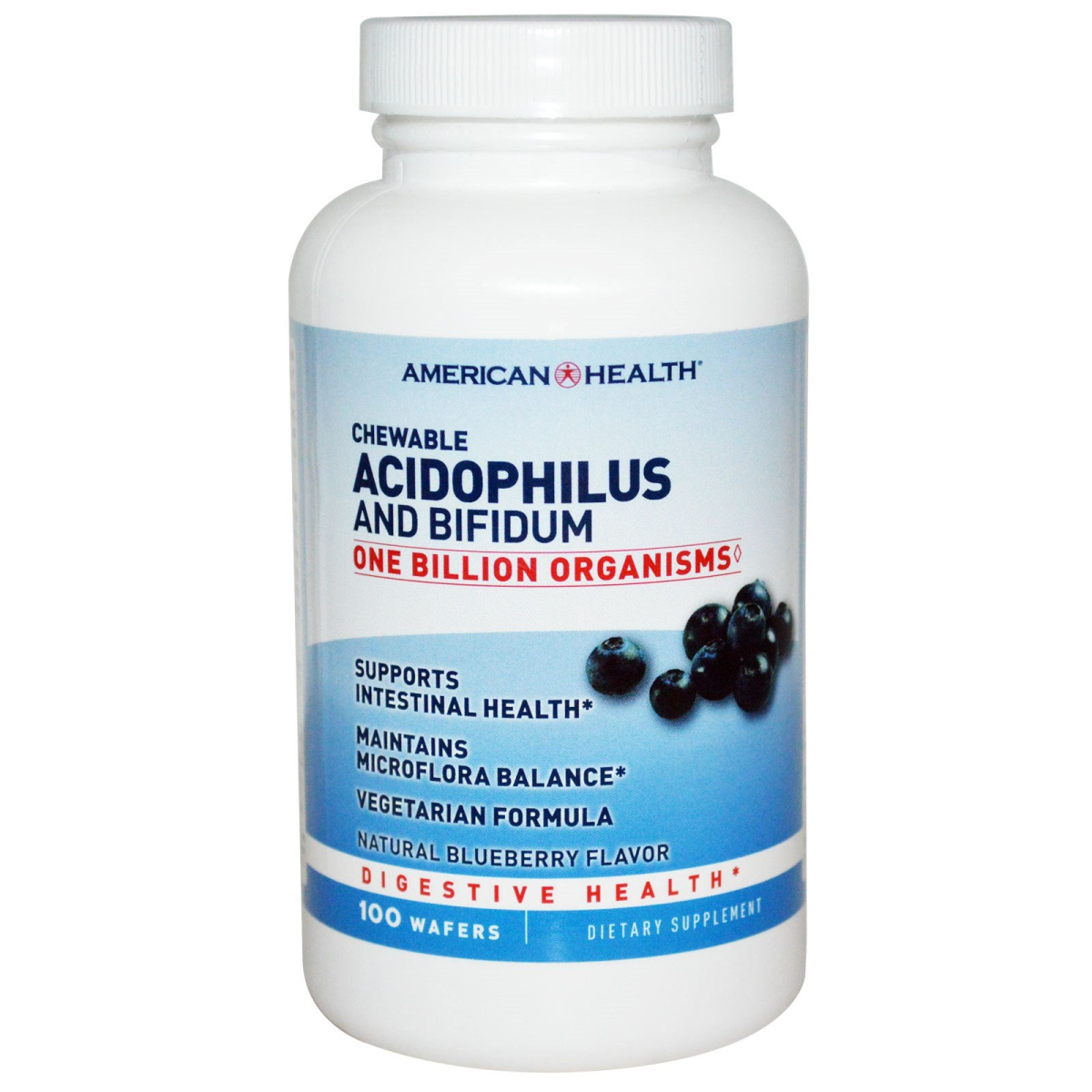 One Billion Organisms♦ Supports Intestinal Health Maintain Microflora Balanced Vegetarian Formula Digestive Health Dietary Supplement Maintain your daily digestive health and optimal intestinal balance with great-tasting Chewable Acidophilus. Acidophilus supports the growth of beneficial bacteria in the intestinal tract, helps with proper nutrient absorption, assists in the body's natural digestive process and contributes to healthy immune function. Acidophilus is the ideal way to help balance our positive flora. Our 100% natural blueberry flavored chewable acidophilus is ideal for both adults and children. Each wafer contains a mix of two classic lactobacilli- acidophilus and bifidum- and is guaranteed to deliver 1 billion microorganisms. ♦ In addition, our Chewable Acidophilus wafers are an easy, convenient and delicious way to receive digestive health benefits. With Acidophilus and Bifidum, you can support your digestive health and feel good all day, everyday. ♦Guaranteed Per Serving, at time of manufacture