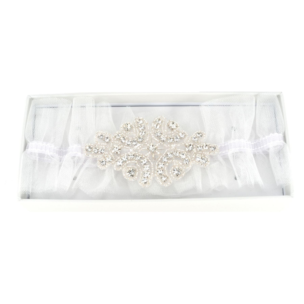 A beautiful white tulle wedding garter with elasticated hem. From AMORE BY JULIANA� - timeless giftware to celebrate the enduring wonder of love.