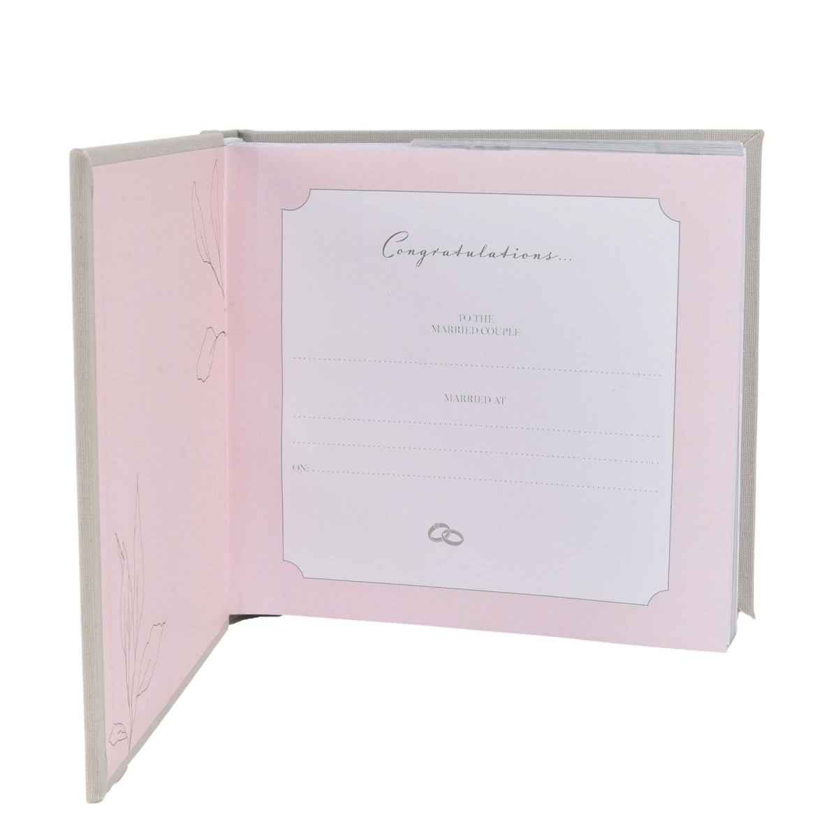 - Inside cover data page for the Bride & Groom's details, date and venue