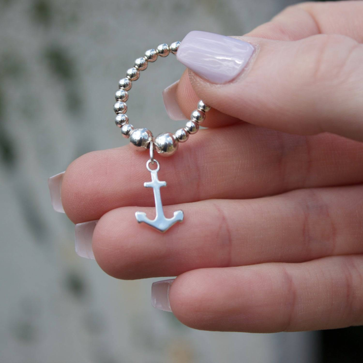 Elevate your jewellery collection with our Silver Ball Bead Ring with Anchor charm. These rings are handmade featuring 20 x 3mm sterling silver beads and 2 x 5mm sterling silver beads and a beautifully crafted anchor charm, symbolising adventure. These rings look great individually or stacked, and make for the perfect gift.