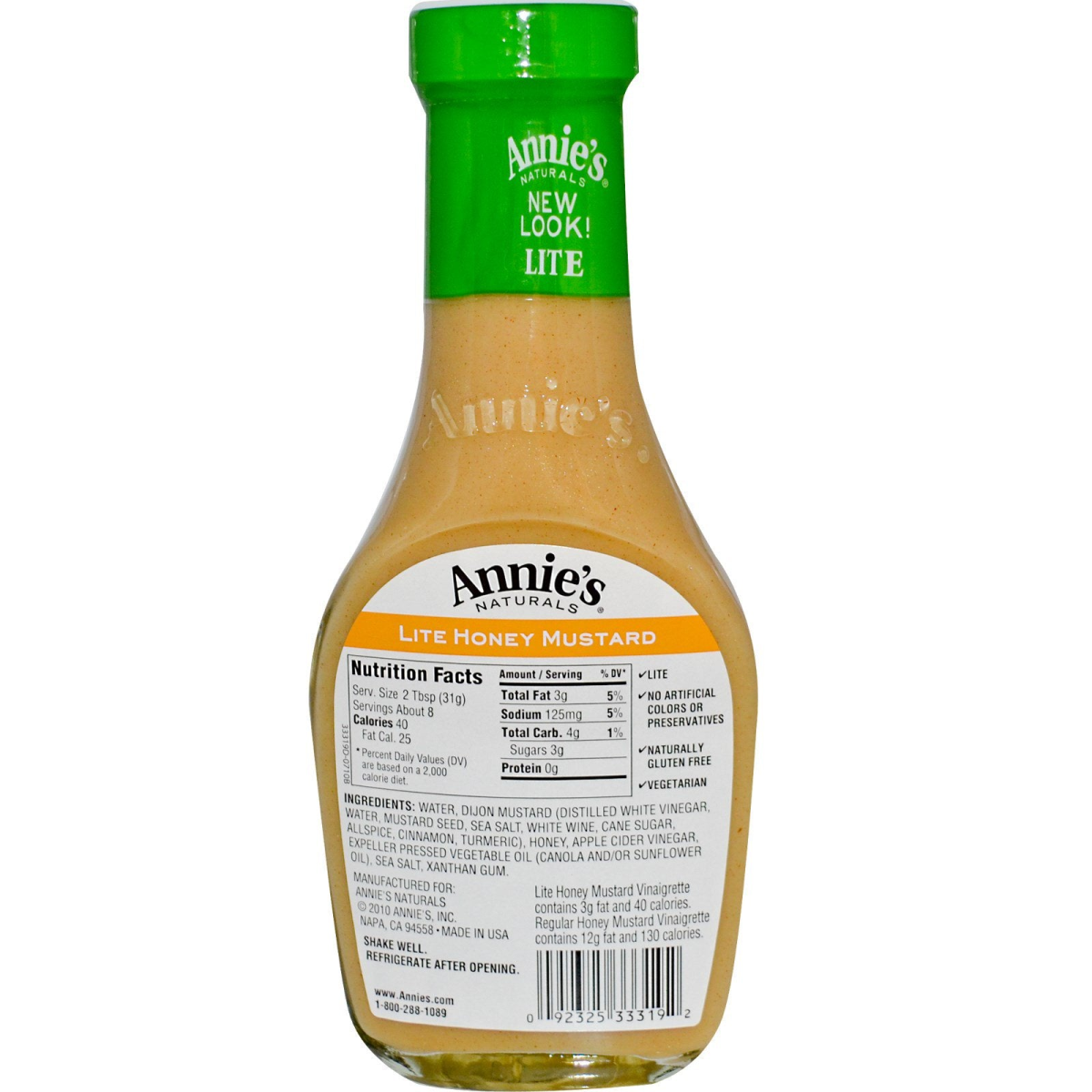 New Look! 75% Less Fat 70% Less Calories Than Regular Honey Mustard Vinaigrette Absolutely Nothing Artificial. No Artificial Colors or Preservatives Naturally Gluten Free Vegetarian