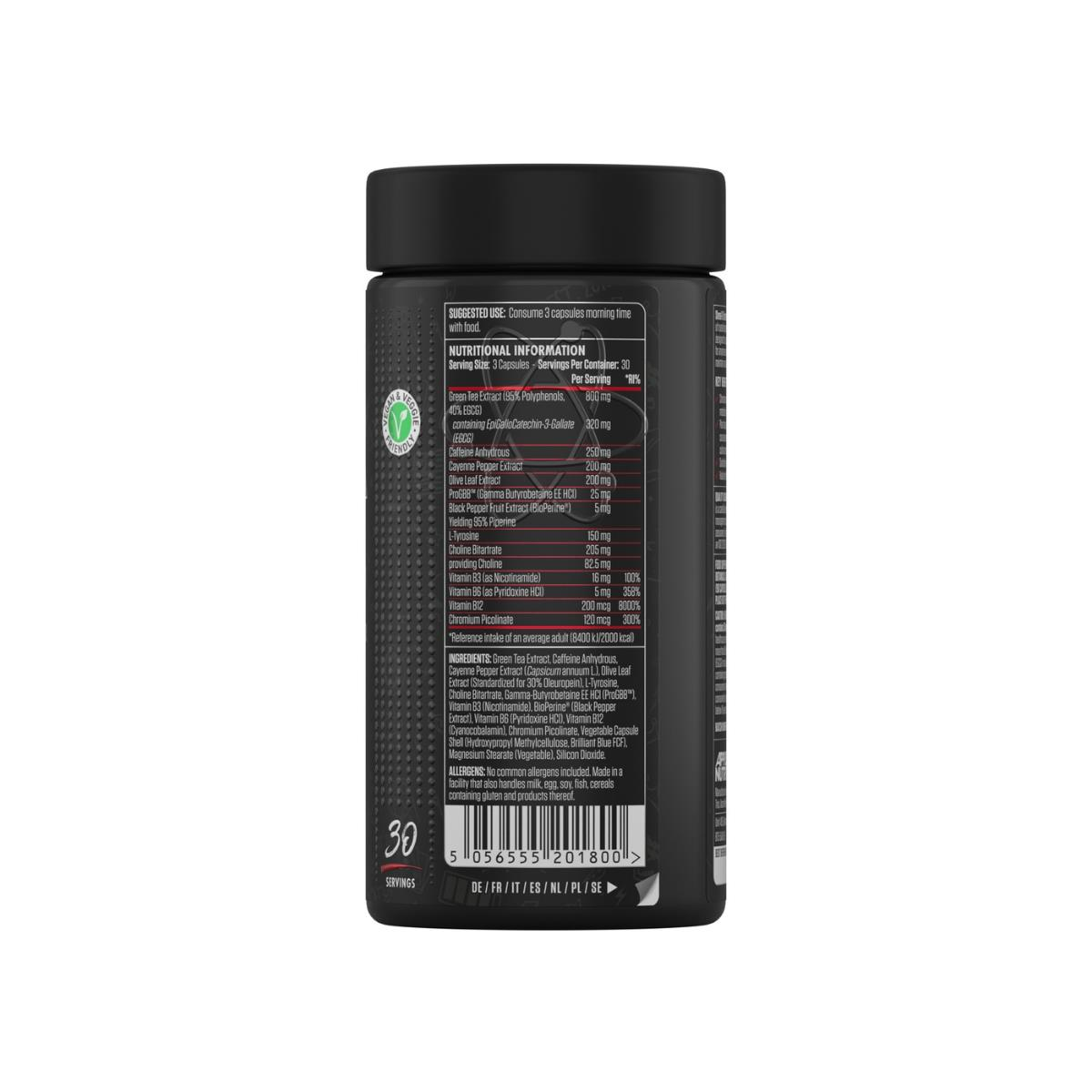 Lemon Ice Tea Flavour: Acetyl L-Carnitine, Betaine Anhydrous, Citric Acid (Acidity Regulator), Vitamin C (Ascorbic Acid), Green Tea Extract (95% Polyphenols), Choline Bitartrate, L-Theanine, Gymnema Sylvestre Leaf Extract (75% Gymnemic Acids), Taurine, L-Tyrosine, Sodium Bicarbonate, Caffeine Anhydrous, Natural Flavour, Natural Colour, Anti-Caking Agents (Silicon Dioxide, Calcium Silicate), Breathe Easy™ (Flavour), Pro GBB™ (Gamma-Butyrobetaine Ethyl Ester HCL), Sucralose (Sweetener), Vitamin B3 (Nicotinamide), Vitamin B6 (Pyridoxine Hydrochloride), Vitamin B12 (Cyanocobalamin).