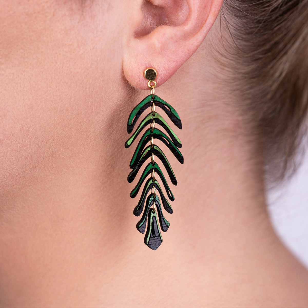 Lightweight Recycled Wood Gold Stud Dangle Earrings