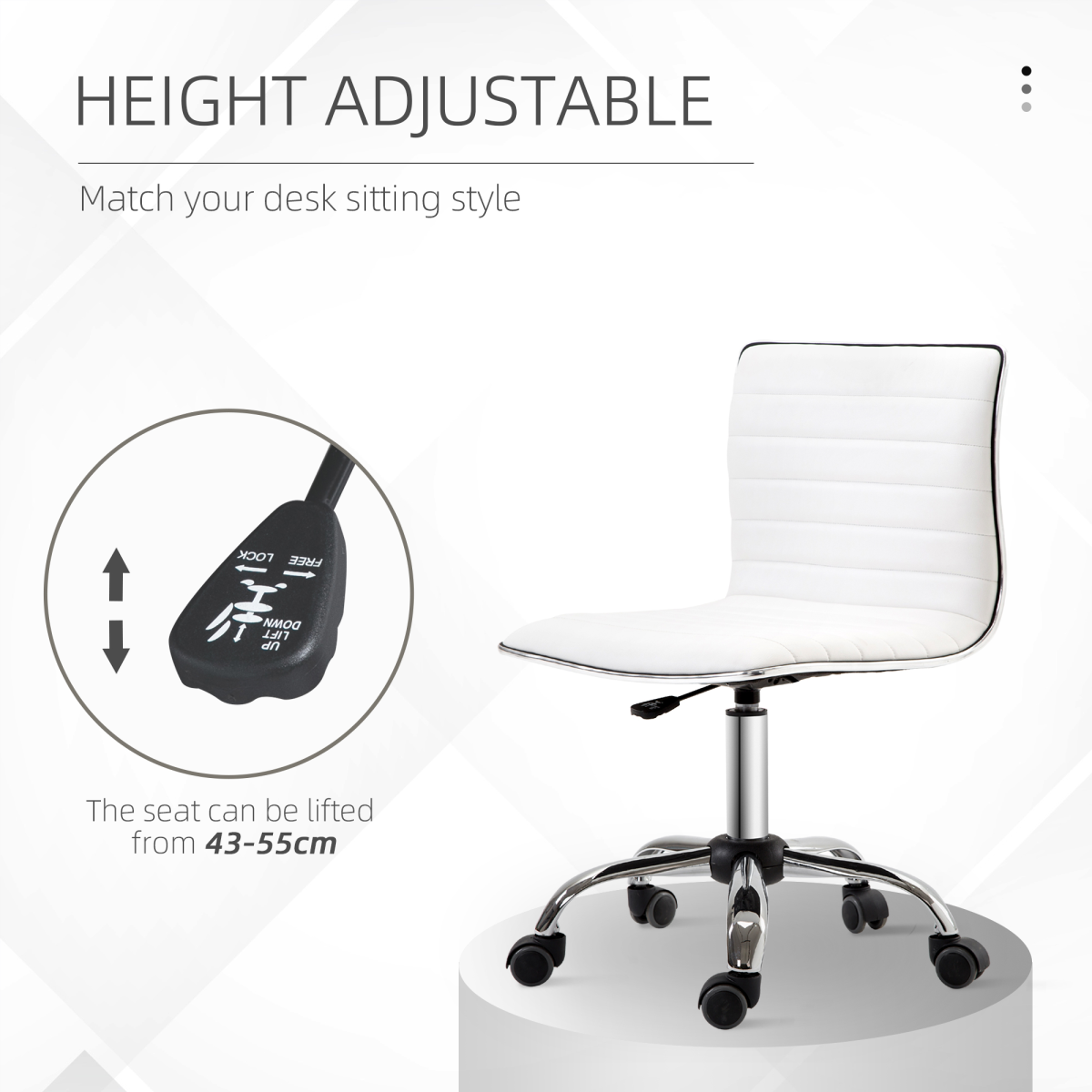 Armless Mid-Back Adjustable Office Chair 360 Swivel Ergonomic White HOMCOM