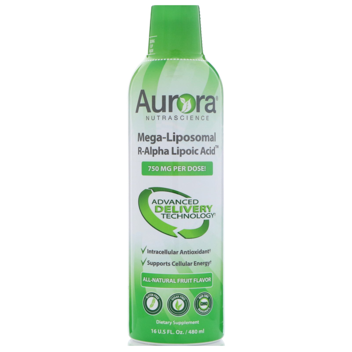 Aurora Nutrascience, Mega-Liposomal R-Alpha Lipoic Acid, All-Natural Fruit Flavor, 750 mg, 16 fl oz (480 ml)