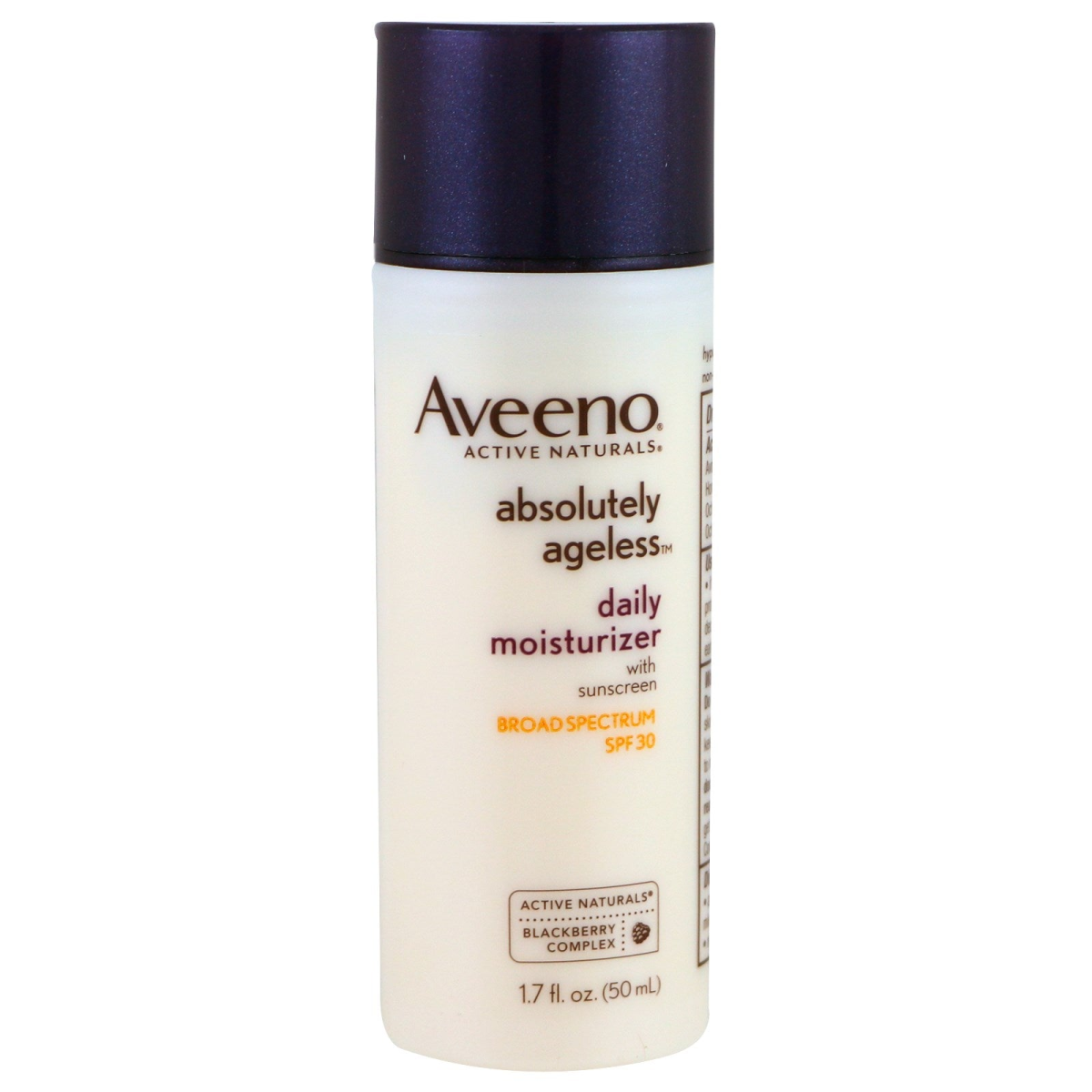 Broad Spectrum SPF 30 Visibly Reduces Fine Lines and Wrinkles Protects to Keep Skin Looking Young and Healthy Active Naturals - Blackberry Complex Dermatologist Recommended For Over 60 Years Hypoallergenic Non-Comedogenic Non-Greasy Dermatologist Tested Discover a youthful, natural beauty that can only come from truly healthy skin Absolutely Ageless Daily Moisturizer Broad Spectrum SPF 30 nurtures, improves and protects to reveal younger and healthier-looking skin. This moisturizer contains our exclusive Active Naturals Blackberry Complex and fights signs of aging while nourishing skin. In just 1 week, it is clinically proven to nourish skin and: Improve the appearance of fine lines and wrinkles Smooth texture and even skin tone Strengthen skin's natural moisture barrier to maintain healthier-looking skin over time At Aveeno, we know that healthy skin is the foundation of younger looking skin. That's why we've created Aveeno Absolutely Ageless, an anti-aging skincare collection, which harnesses the power of antioxidant rich Blackberry in a proprietary complex* infused with vitamins and powerful anti-aging ingredients to keep your skin looking young and healthy. Each product containing our exclusive Active Naturals Blackberry Complex is clinically proven to fight fine lines, wrinkles and other signs of aging, while nourishing skin. Try the rest of Aveeno Absolutely Ageless skincare collection, including: Nourishing Cleanser Restorative Night Cream *Nourishing Cleanser contains antioxidant rich Blackberry Extract