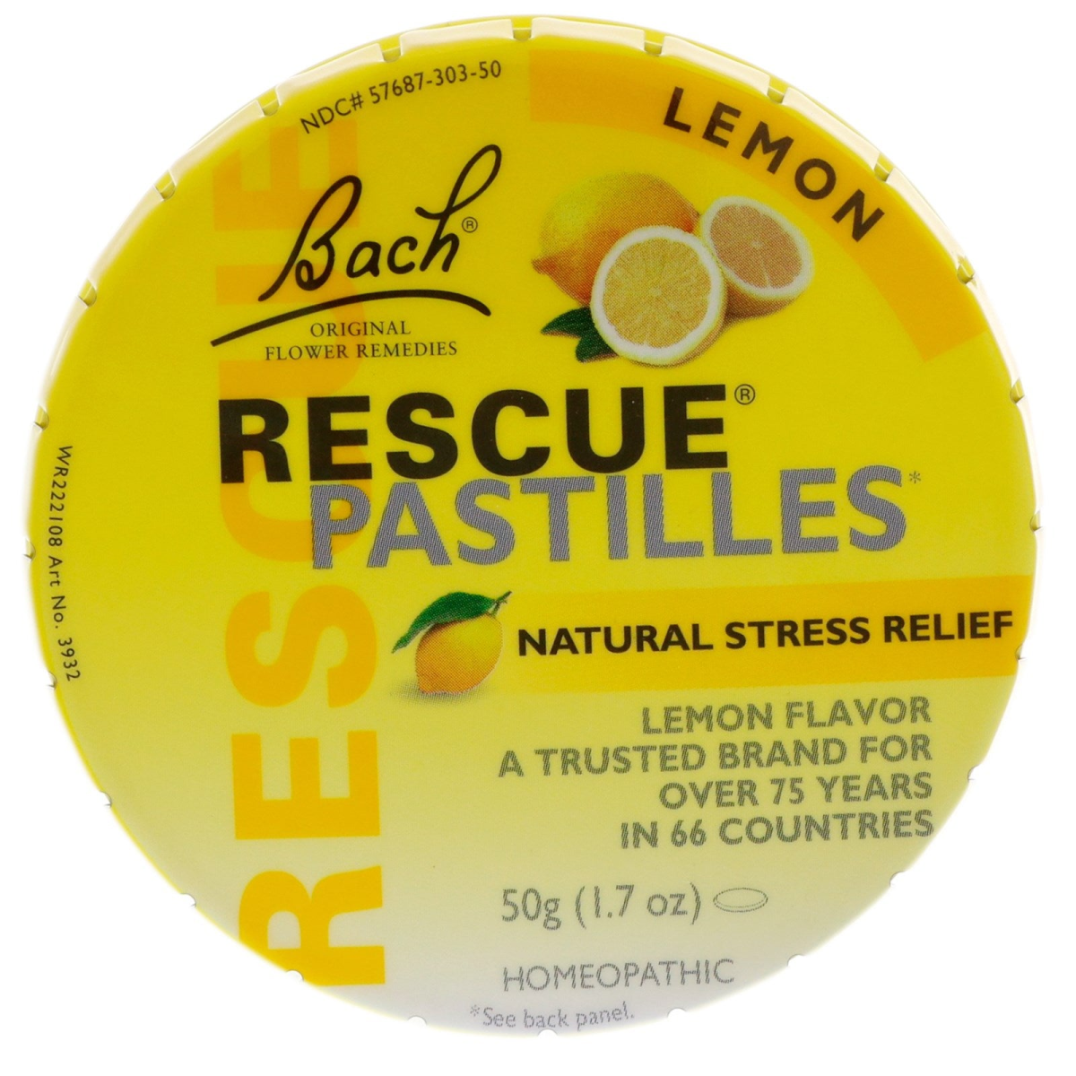 Bach, Original Flower Remedies, Rescue Pastilles, Natural Stress Relief, Lemon, 1.7 oz (50 g)