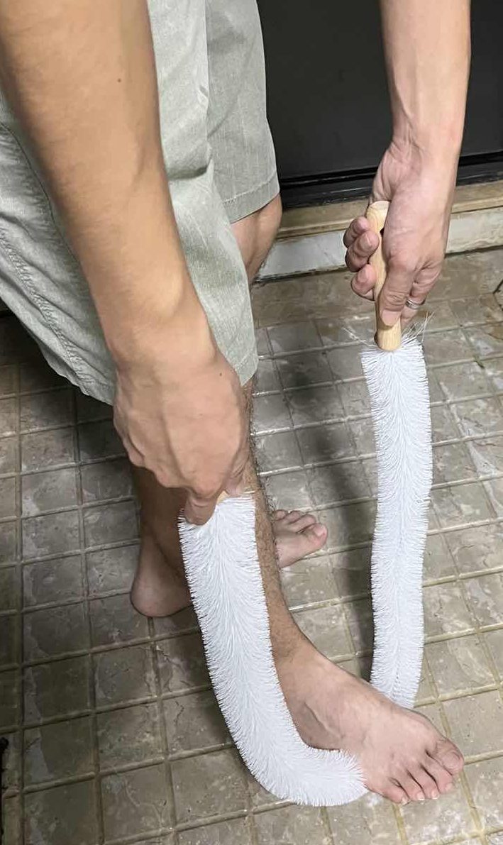 Our new light, long bristle brush with two easy-grip wooden handles guarantees an invigorating all-over clean.