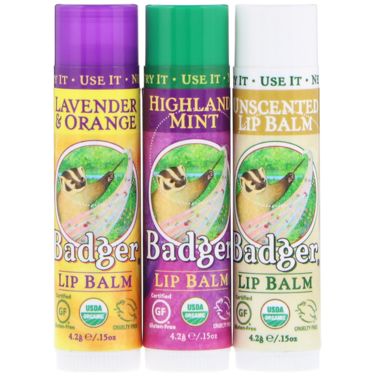Badger Company Lip Balm Gift Set Green Box 3 Pack .15 oz (4.2 g) Each