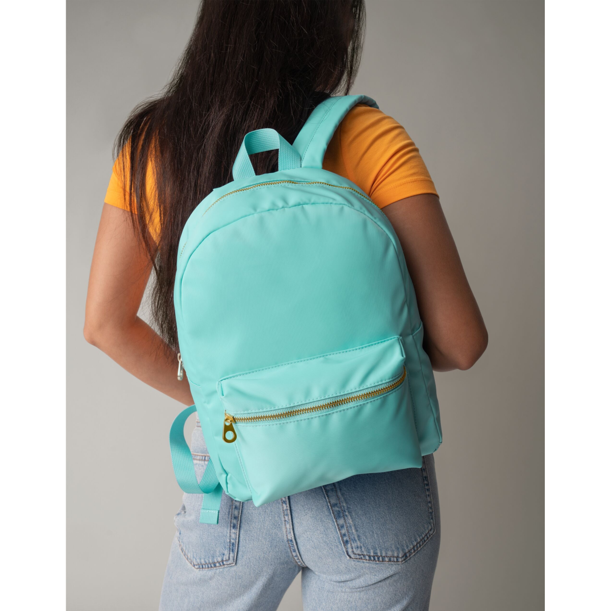 Recycled lining material | Adjustable straps | Padded back panel | Bright colours | Zip front pocket | 32x26x12cm