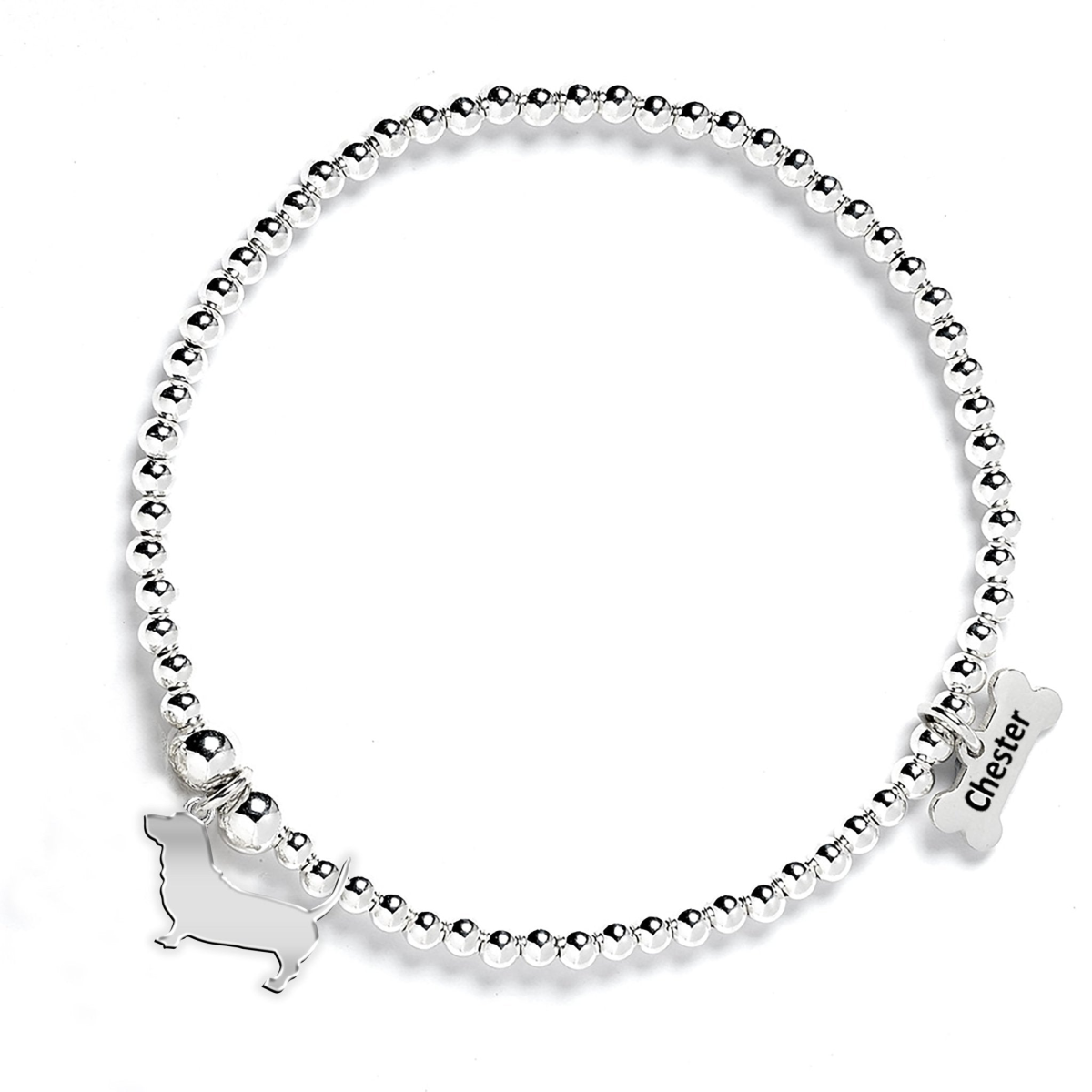 Basset Bleu de Gascogne Silhouette Silver Ball Bead Bracelet - Personalised