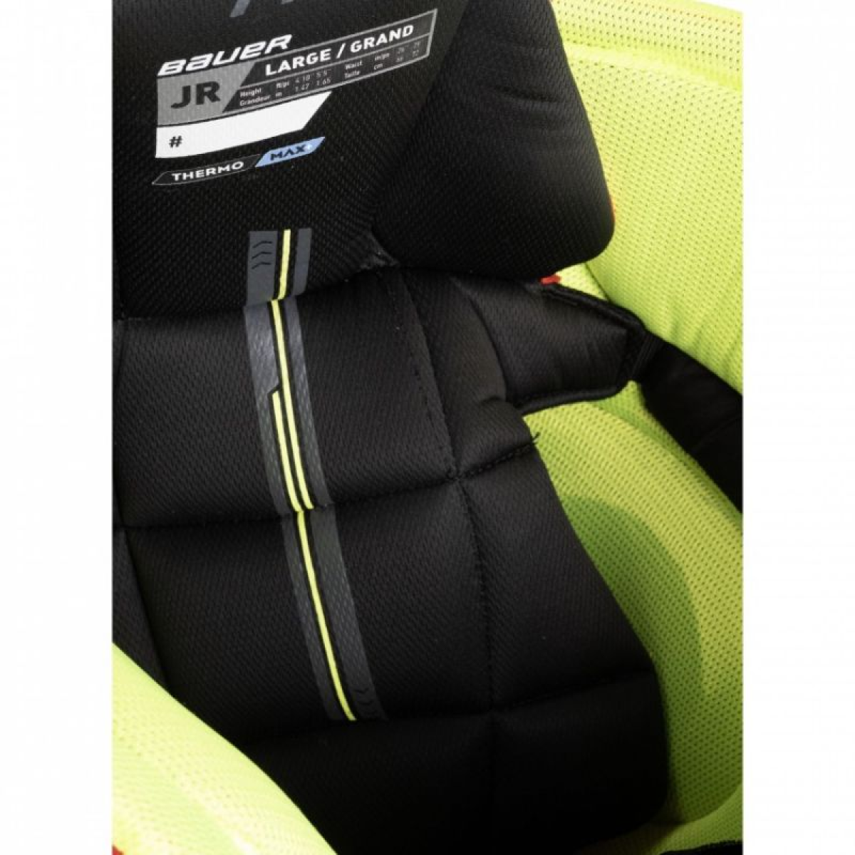 Bauer HP Pro Junior Hockey Pants: The faster you play, the more protection you need. These pants are designed to provide top players with the protection and comfort they need to win on the ice. Key Features: Independent Spine Protection with CURV Composite: Composite material and independent spine protection adapt to your game, providing protection in key areas and helping you stay agile on the ice. DC TECH Foam Inserts: Provides protection when blocking shots and against accidental impacts thanks to the addition of foam on the hips. 840D Nylon Material: Made of water-resistant nylon fabric that's designed to withstand heavy use for many seasons. HD Foam Insert: Lightweight foam provides additional hip protection in high-impact areas. These pants are the perfect choice for any hockey player looking to combine the highest level of protection with comfort. TECHNICAL SPECIFICATIONS Intended Use Ice Hockey, Field Player, Elite Jr Material Mix of durable 840D nylon and stretch zones Protection Spine Protection: Independent spine protection made of CURV Composite material Kidney Protection: One-piece kidney protection with lightweight HD foam insert Fit: Classic fit Hip Protection: One-piece hip protection with DC TECH foam insert Thigh Protection: Molded PE and HD foam, removable for personalization Waistband Waistband with side buckle Adjustment Length adjustment +1'' Padding THERMOMAX + padding