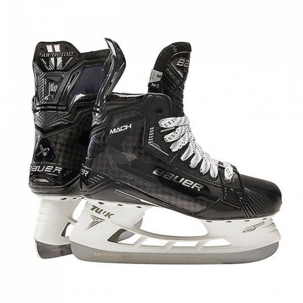 Bauer Supreme Mach Sr Hockey Skates Completely redesigned skates for the Pro/Elite player. The SUPREME MACH skates are designed to increase the length of the kick and maximize the final speed, so you can confidently make decisive plays. Flex Facing, a special flex zone between the second and third eyelets, facilitates forward movement and provides greater freedom of movement.