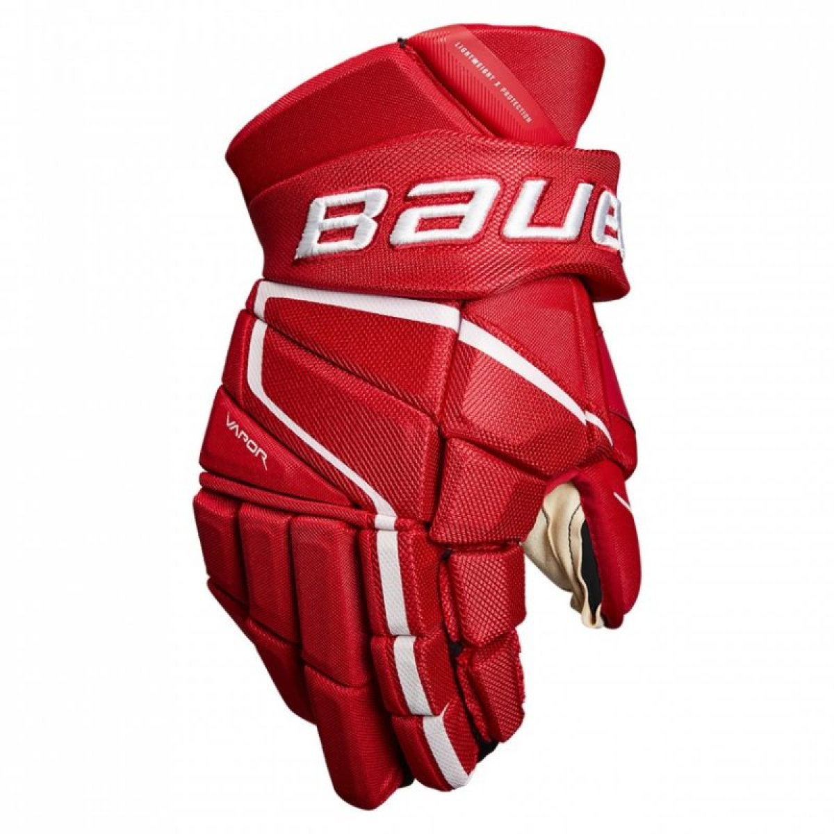 Bauer Vapor 3X Int Hockey Gloves. The unique, tapered VAPOR fit is designed with comfort and protection in mind. Dual-density foam gives the Vapor 3X the perfect balance between protection and comfort. The exclusive TAKTILE palm gives the glove a soft feel. The superb feel and comfort are enhanced by the Nanosense inner finger with sophisticated THERMOMAX padding, which keeps your hand comfortable throughout the game. TECHNICAL SPECIFICATIONS: Intended Use: Ice Hockey, Int Field Player. Back: Dual-density foam with HYPERLITE HD and PE inserts. Fingers: 3-piece index finger with triple-density foam and PE inserts. Thumb: 2-piece flexible thumb. Material: PRO Lite Tex + Poly Mesh. Cuff: Molded cuff with 3D embroidery. Palm: Dark Grey CONNECT. Palm with comfortable, elastic inserts.