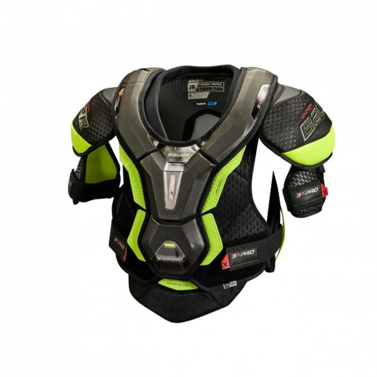 Bauer Vapor 3X Pro Jr Hockey Shoulder Pads Level: Performance Shoulder Protection: Molded low-profile shield Sternum Protection: Floating Hyperlite HD sternum protection with HD foam inserts
