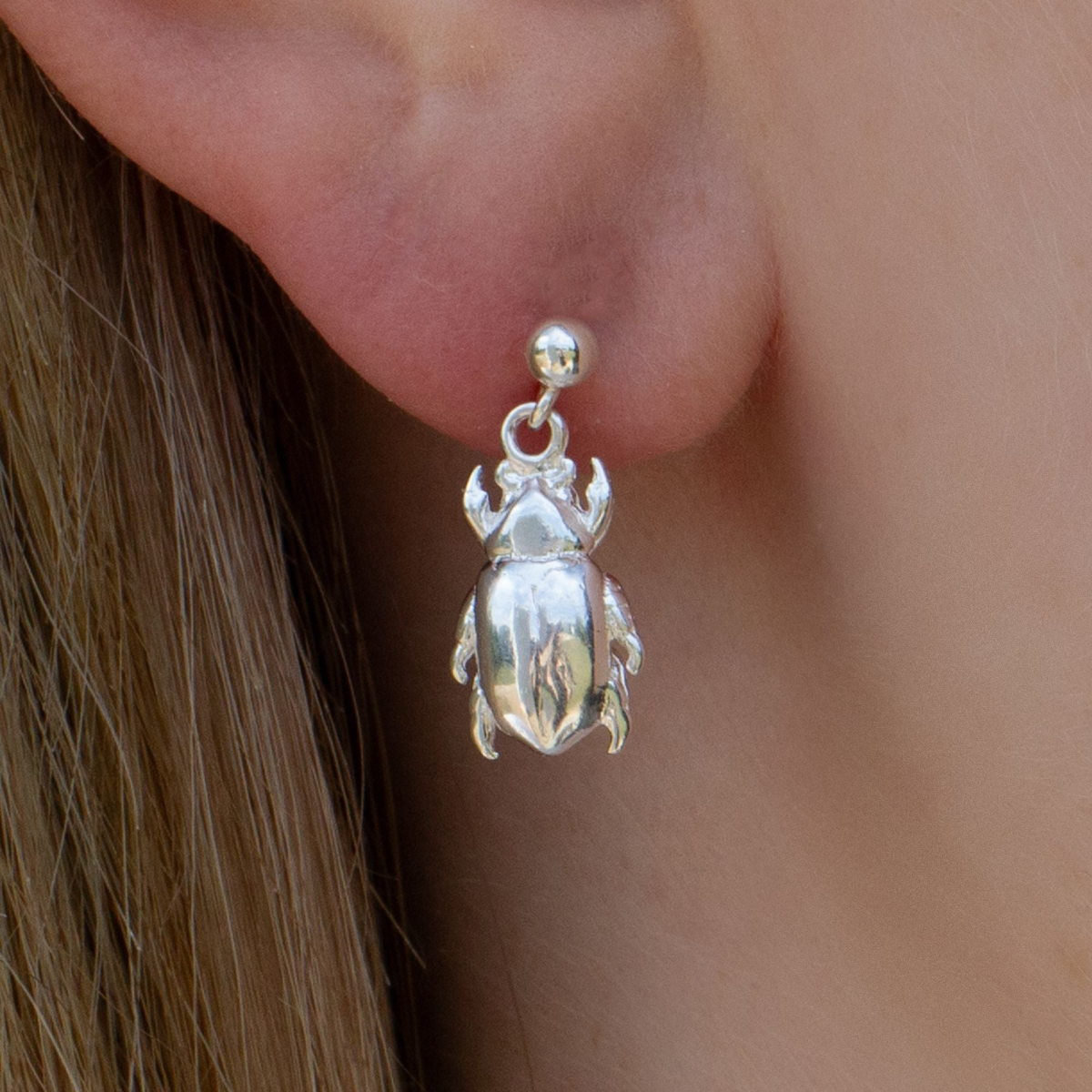 Celebrate your love for nature with our Sterling Silver Beetle Earrings, a beautifully crafted keepsake for animal lovers. Choose from either a Hook, Huggie Hoop or Stud Drop style earring to be fit your preference. These high-quality 925 sterling silver earrings feature the distinctive characteristics of a beetle and represent strength and resilience. Whether buying for yourself or for a loved one, these delicate earrings are the perfect gift for any nature lover.