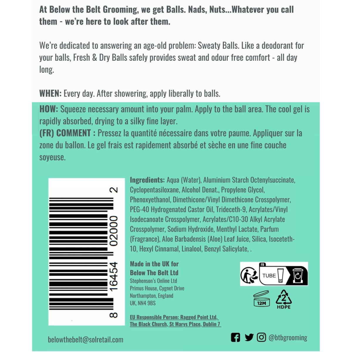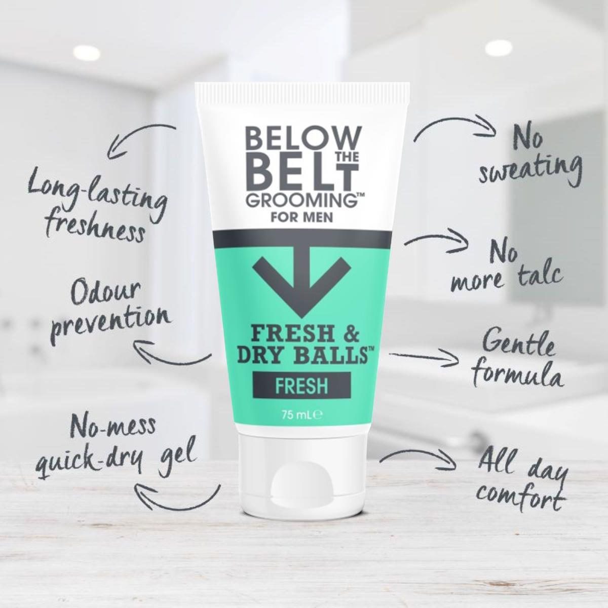 Start the day The right way with Below The Belt Grooming. Just like you would use your daily deodorant, apply below the belt on your balls for long lasting freshness to leave you with extra dry confidence. The fresh fragrance is a refreshingly clean, oceanic scent to provide you with long-lasting freshness. All of our products are dermatologically tested, Vegan friendly and Cruelty free.