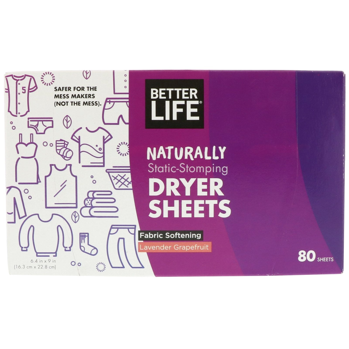 Better Life, Naturally Static-Stomping Dryer Sheets, Lavender Grapefruit, 80 Sheets