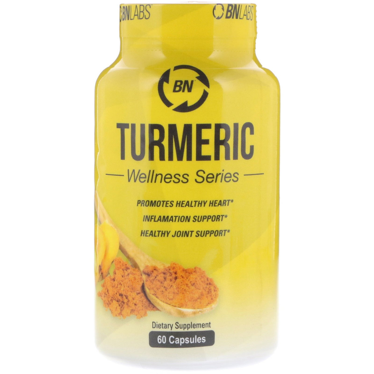 Wellness Series Promotes Healthy Heart Inflamation Support Healthy Joint Support Dietary Supplement Truth • Quality • Results Key Health Benefit: Turmeric Curcumin with BioPerine is a powerful antioxidant, providing anti-aging benefits. Why BN Labs: Vegan and vegetarian friendly Turmeric Curcumin is produced in gluten-free capsules. All BN Labs Nutritional supplements are made in the USA, in GMP-certified manufacturing facilities, using only the highest quality ingredients. What is Turmeric: Turmeric and Curcumin is a natural spice, that has been used for centuries as an ancient remedy in Ayurvedic treatments, mainly as a powerful antioxidant, providing anti-aging benefits, anti inflammatory, healthy heart and joints. These ancient remedies are now incorporated into modern dietary supplement. What is BioPerine: BioPerine (black pepper fruit extract) helps to increase absorption and bio-availability of Turmeric Curcumin. BioPerine increases the positive effects of the Turmeric Supplement. *Always consult a doctor before starting any new supplement routine.