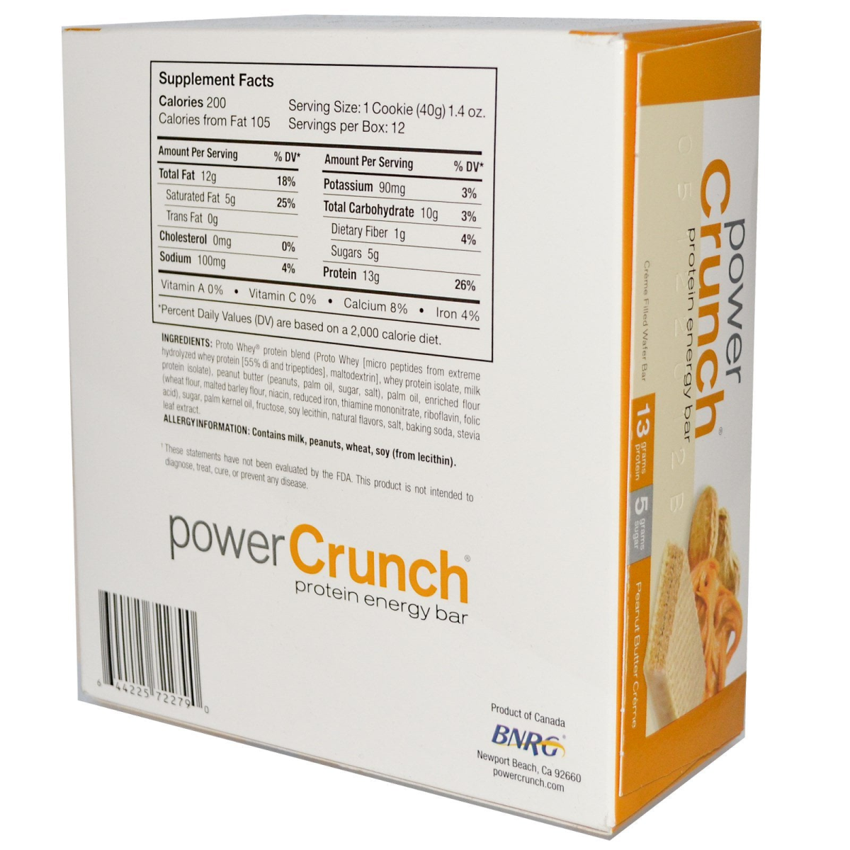 High Protein Creme Filled Wafer Bar 13 Grams Protein 5 Grams Sugar Proto Whey for Maximum Protein Absorption This box contains 12individually wrapped power crunch cookies Proto Whey is a revolutionary new form of dietary protein. Its Micro Peptides are designed exactly to specifications of human metabolism (dieting, muscle repair & growth, energy, & immune response).
