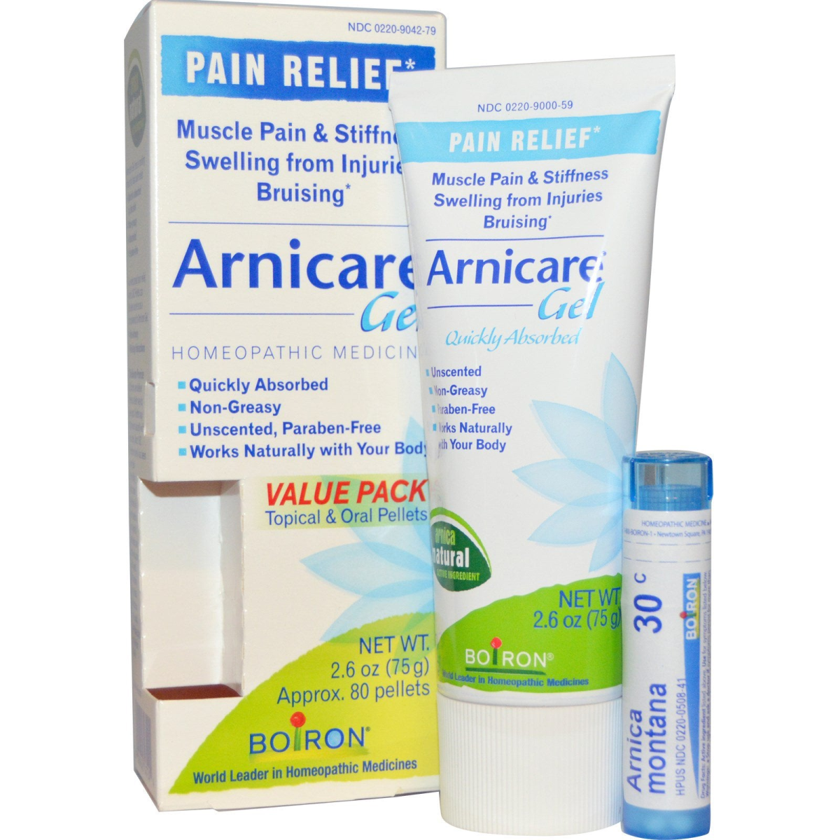 Pain Relief Muscle Pain & Stiffness Swelling from Injuries Bruising Homeopathic Medicine Quickly Absorbed Non-Greasy Unscented, Paraben-Free Works Naturally with Your Body World Leader in Homeopathic Medicines Arnica Natural Active Ingredient Arnicare Gel has a cooling effect for fast pain relief. Quickly absorbed by the skin Non-greasy Unscented Paraben-free For widespread pain relief, Arnica 30C Pellets can be taken alone or as a complement to Arnicare Gel. Non-drowsy No drug interactions The Boiron Promise At Boiron, we believe there's a better way to feel good. A better way that works naturally with your body. Since 1932, the Boiron family has been committed to providing safe, natural medicines. As world leader in homeopathic medicines, our passion is your total health. Our promise is your total satisfaction. Uses: Temporary relieves muscle pain and stiffness due to minor injuries, overexertion and falls Reduces pain, swelling and discoloration from bruises.