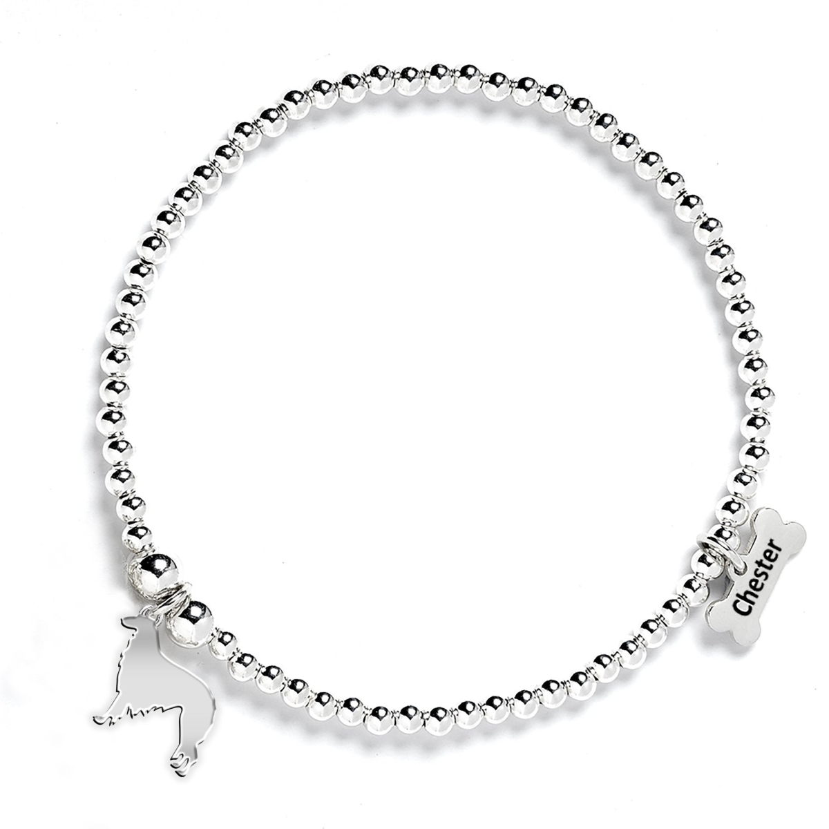 Borzoi Silhouette Silver Ball Bead Bracelet - Personalised