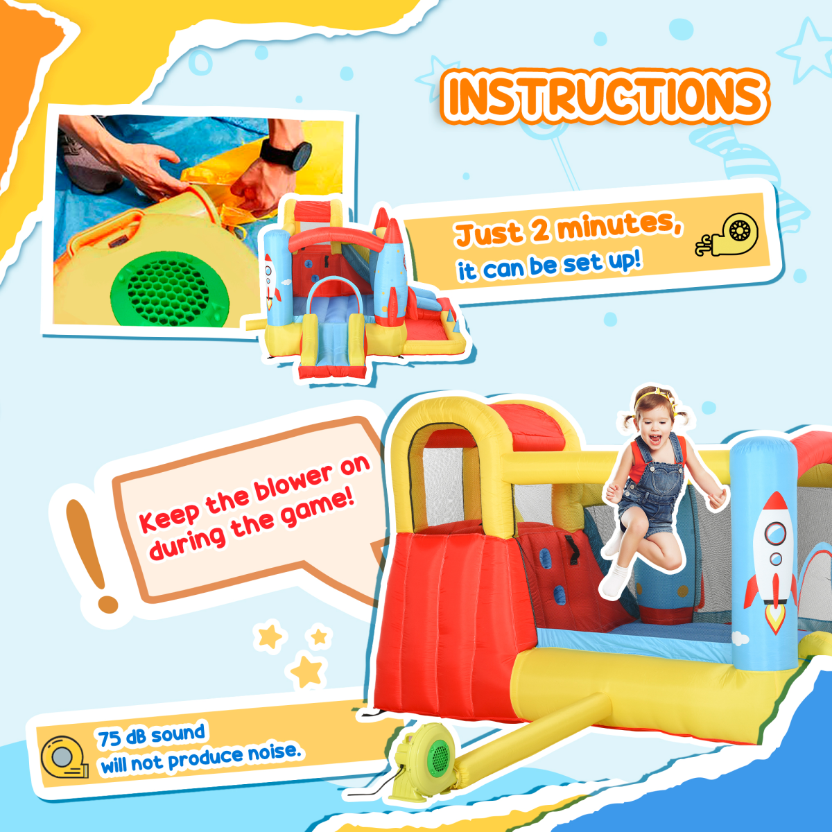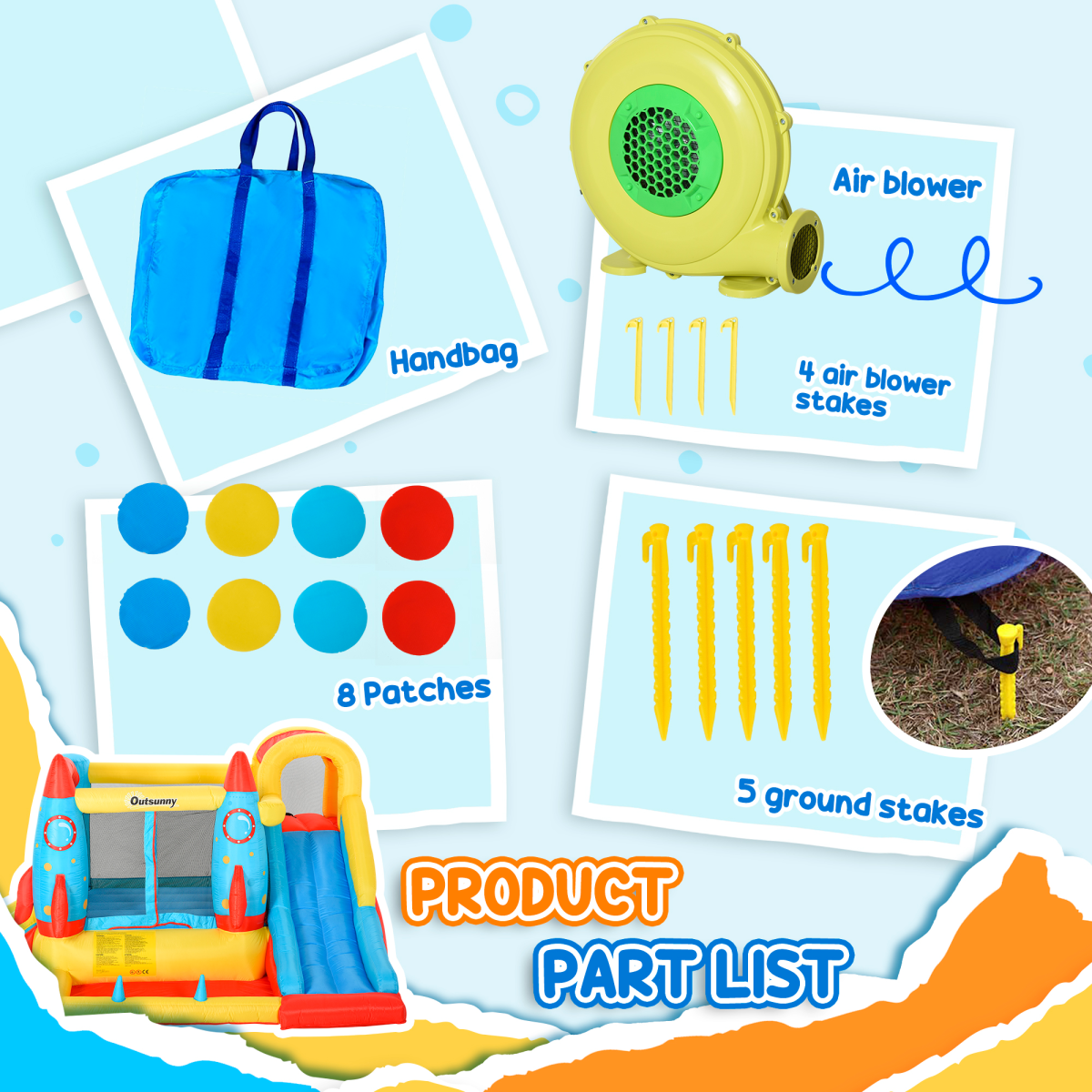 Bouncy Castle with Slide Pool Rocket Trampoline w/ Carrybag Blower
