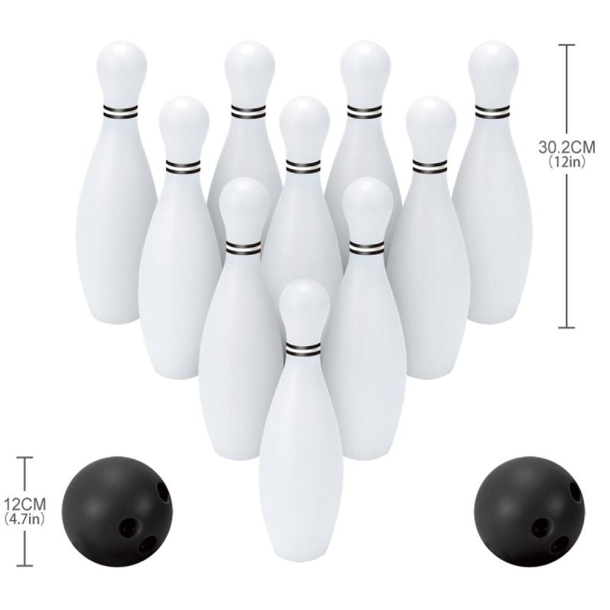 - classic look - 10 white pins + 2 black balls