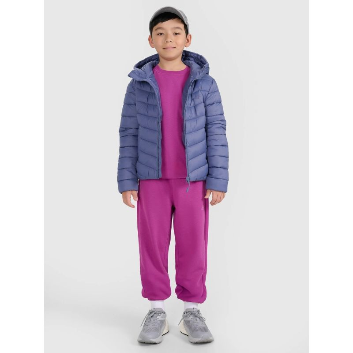 This boys' down jacket is designed with everyday comfort in mind for young wearers. Lightweight synthetic insulation in quilted panels provides warmth without weighing them down, while a water-repellent coating reduces moisture absorption in light precipitation. The regular fit and standard length ensure a comfortable fit, while the high collar and integrated hood protect against cold and wind. Elasticated cuffs enhance insulation, and two open pockets provide convenient handwarming. This is a practical, comfortable, and functional jacket for the cooler days of the transitional period, perfect for both everyday wear and outdoor activities.