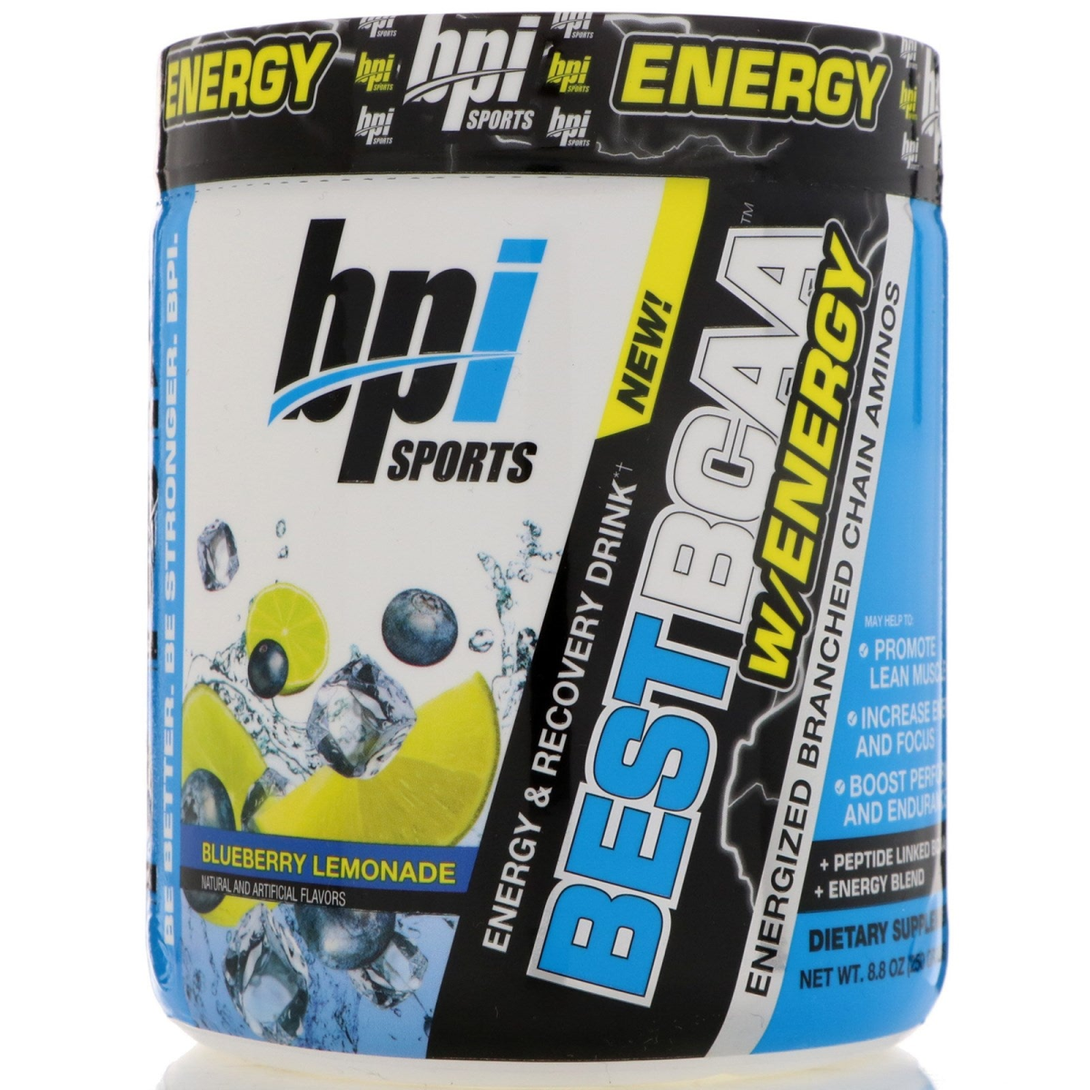 Energy - Lean Muscle - Recovery Be Better. Be Stronger. BPI. Natural & Artificial Flavors Energy & Recovery Drink†Energized Branched Chain Aminos Peptide Linked BCAAs Energy Blend 25 Servings Dietary Supplement 5 g BCAA Oligopeptides^ May help to: Promote Lean Muscle†Increase Energy and Focus†Boost Performance and Endurance††When combined with a proper exercise and nutrition regimen. Statements based on early-stage independent 3rd party in vivo and / or in vitro model scientific research data findings for individual ingredients. ^Weight is based on total of Oligopeptides. Not based on single ingredient weight of Leucine, Isoleucine, or Valine.